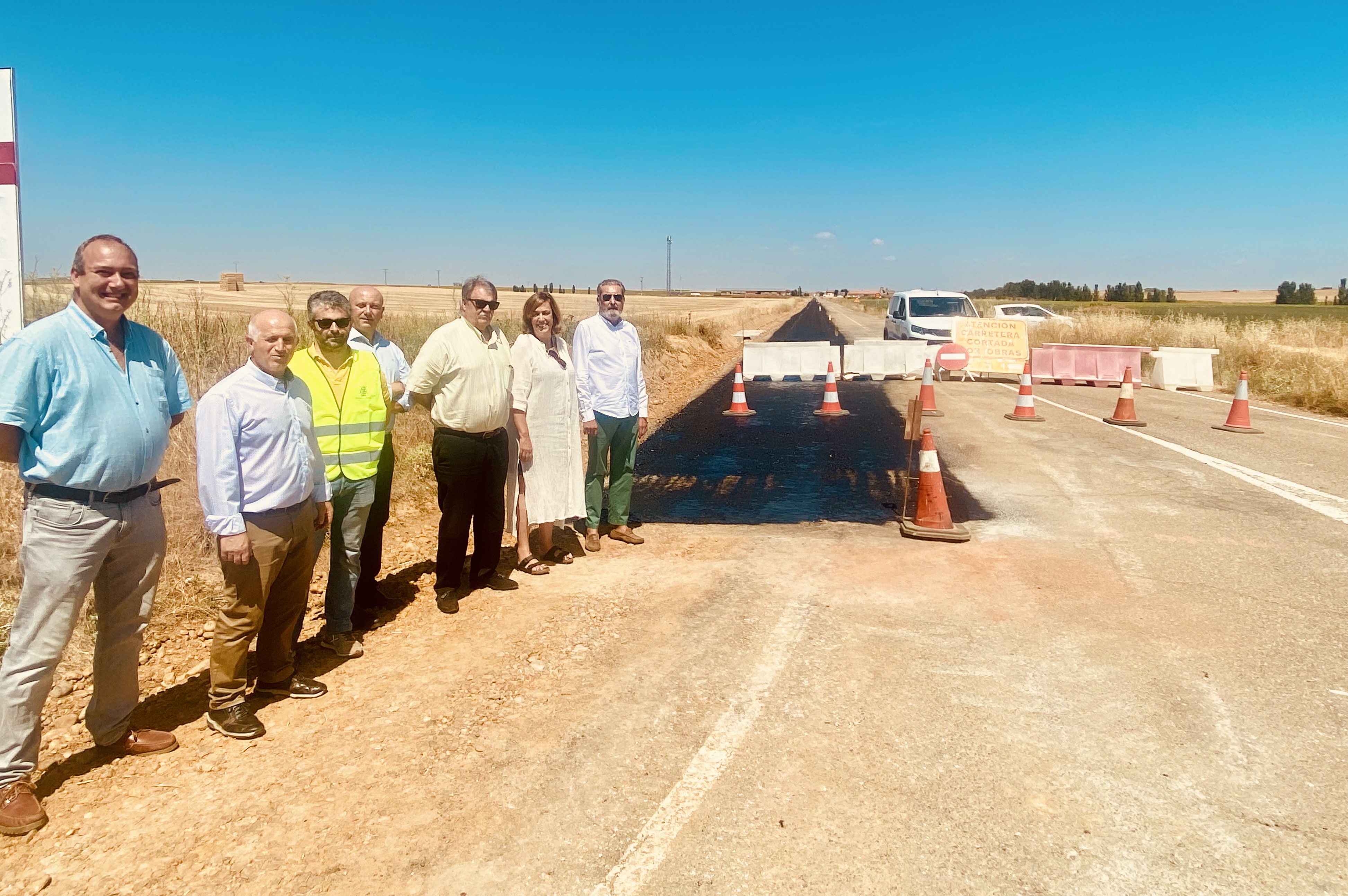 La presidenta de la Diputación de Palencia, Ángeles Armisén, acompañada del diputado de Acción Territorial, Urbano Alonso, del diputado de zona Luis Calderón y del alcalde del Valle del Retortillo, Julio Alfonso Escobar, han visitado las obras que se están ejecutando de ensanche y refuerzo en la carretera PP-9620 Villalumbroso a P-972 por Abastas. Actualmente, esta importante actuación se encuentra en fase de ejecución de la capa de suelo cemento. Los materiales utilizados han sido el aglomerado asfáltico en caliente para la base y rodadura, zahorra natural y artificial.