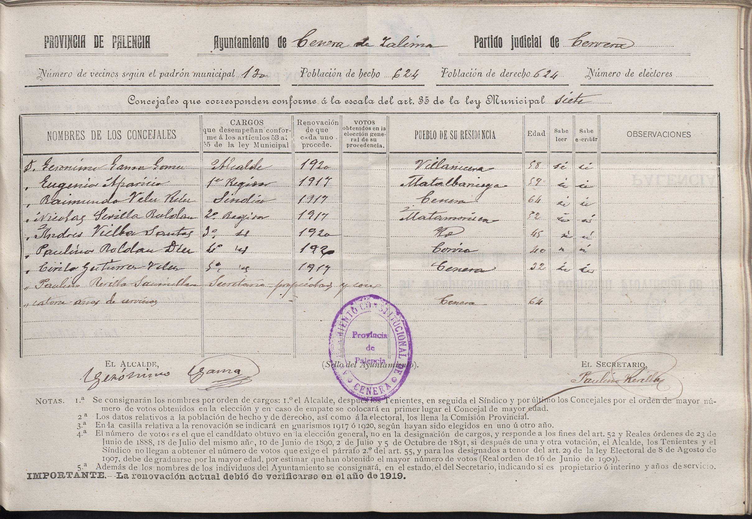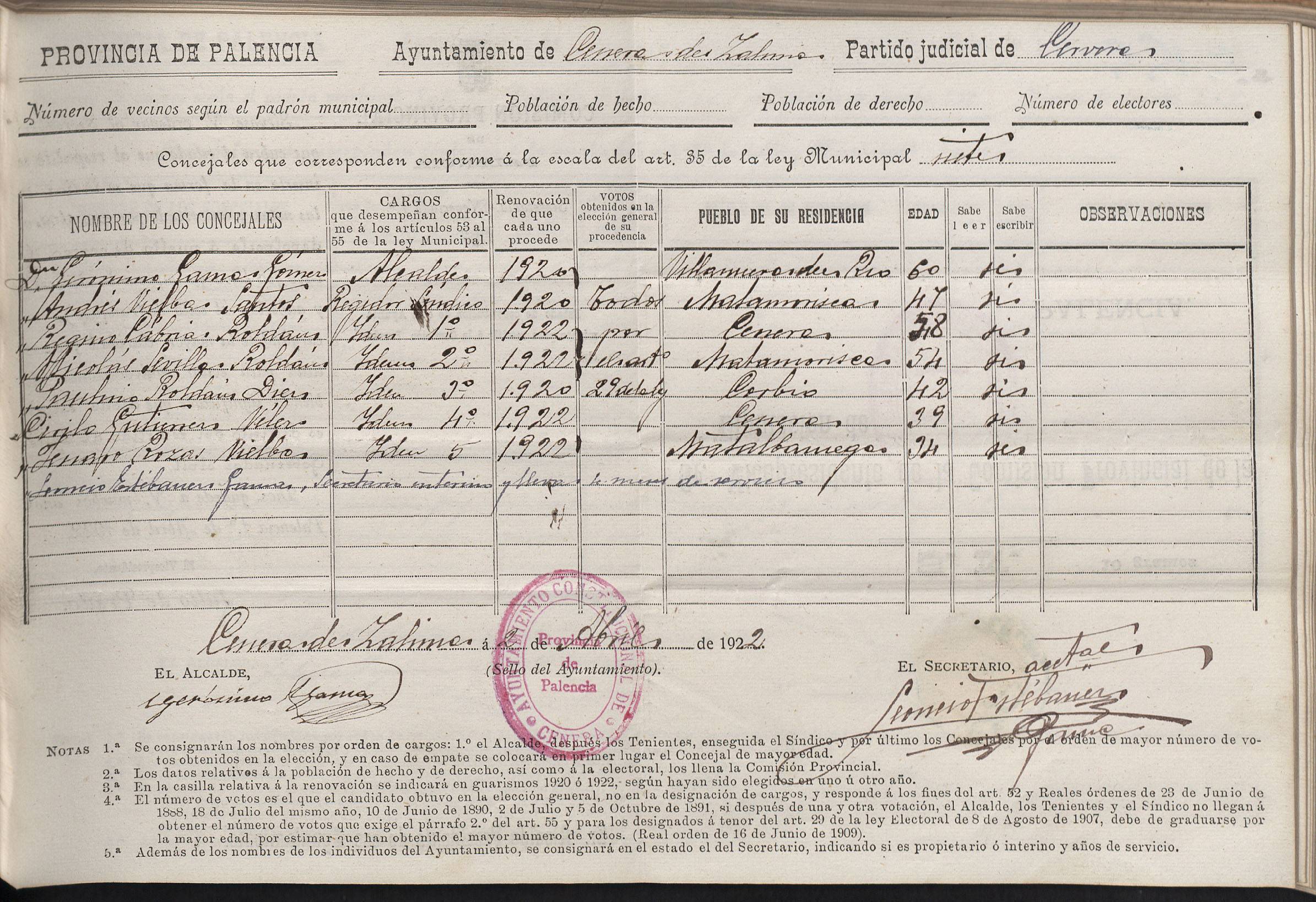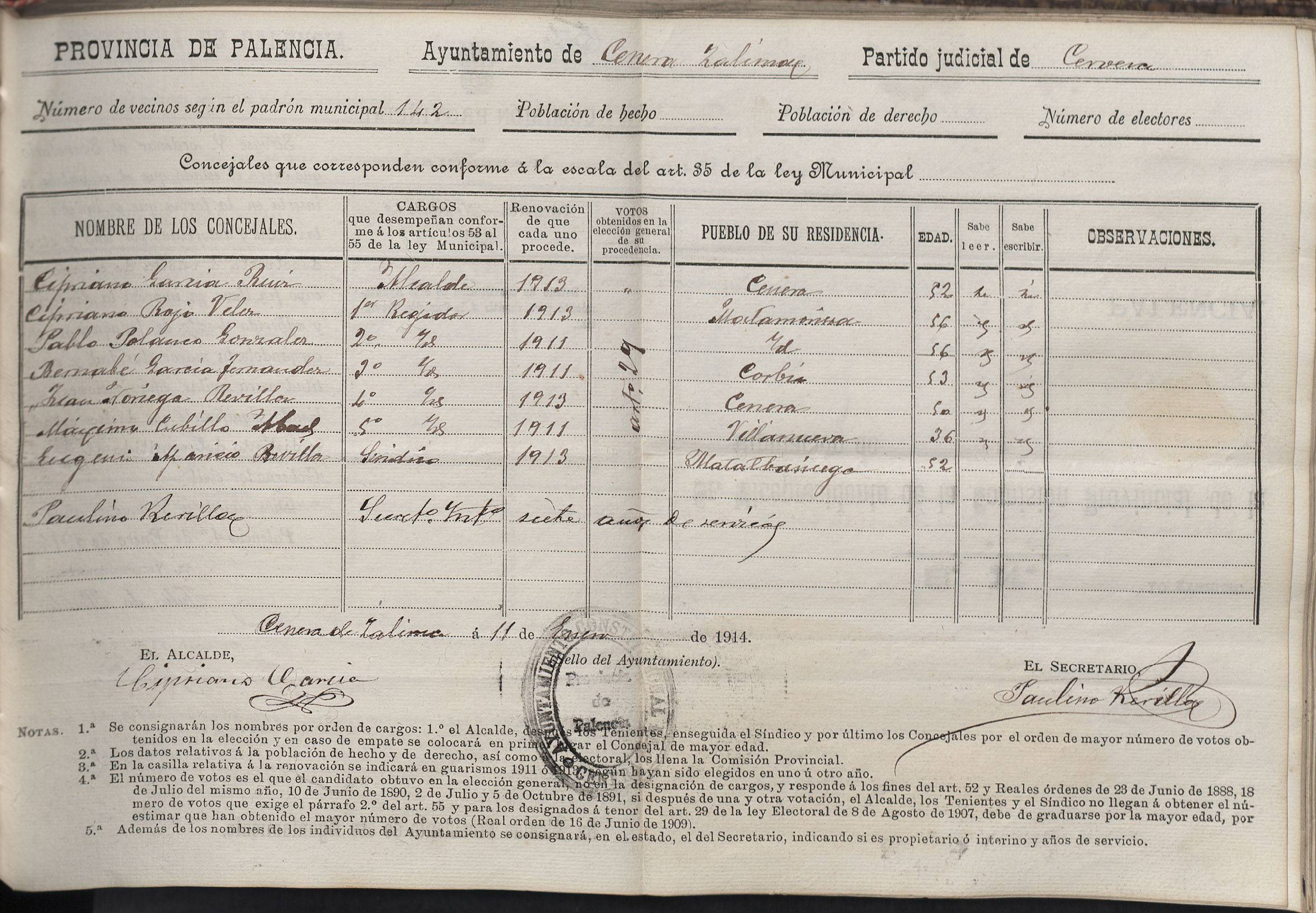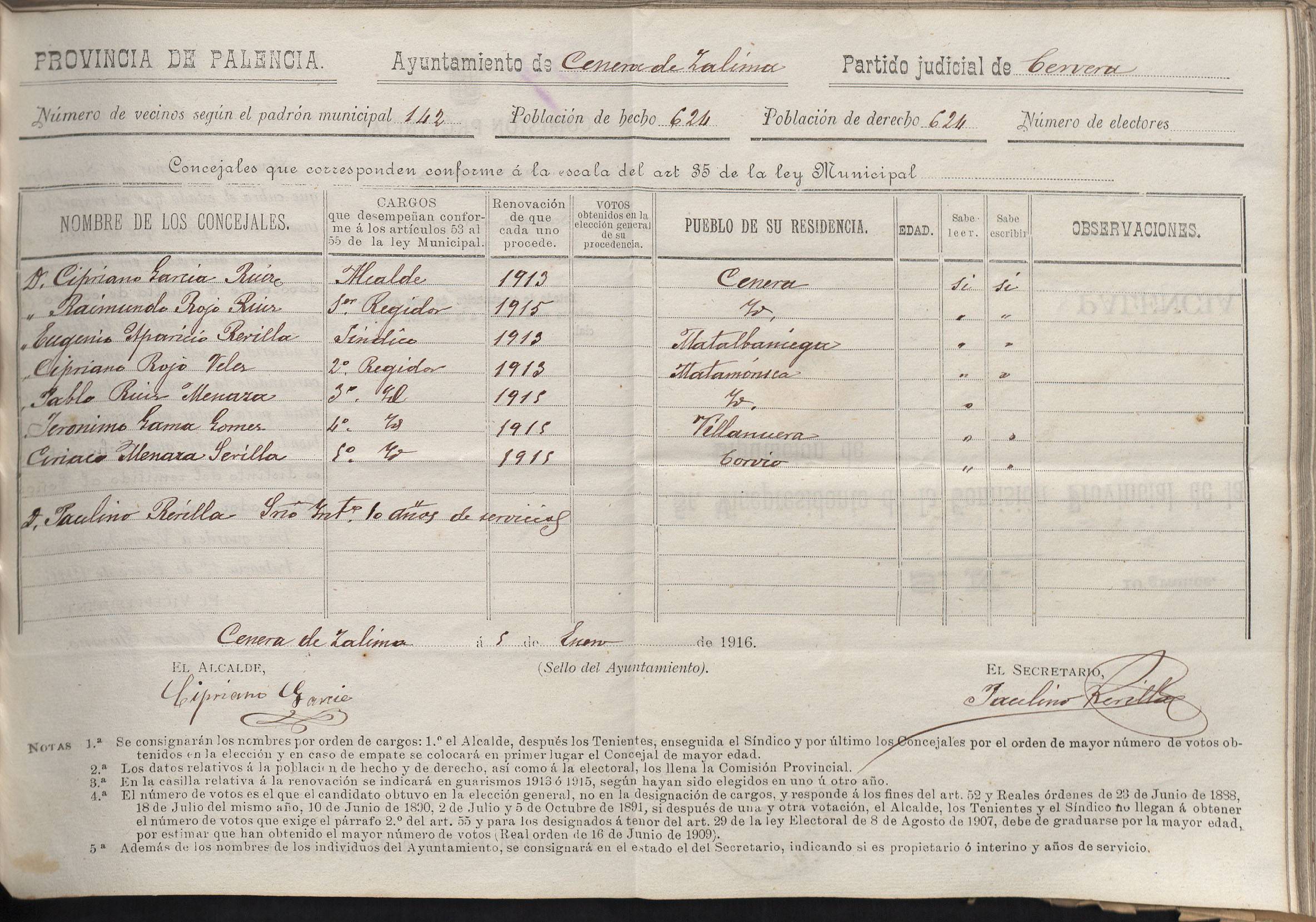Cargos Ayuntamientos: Cenera de Zalima