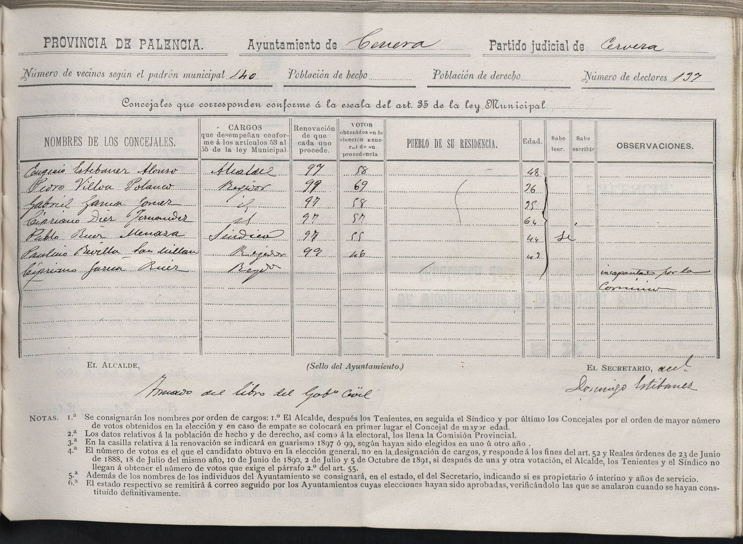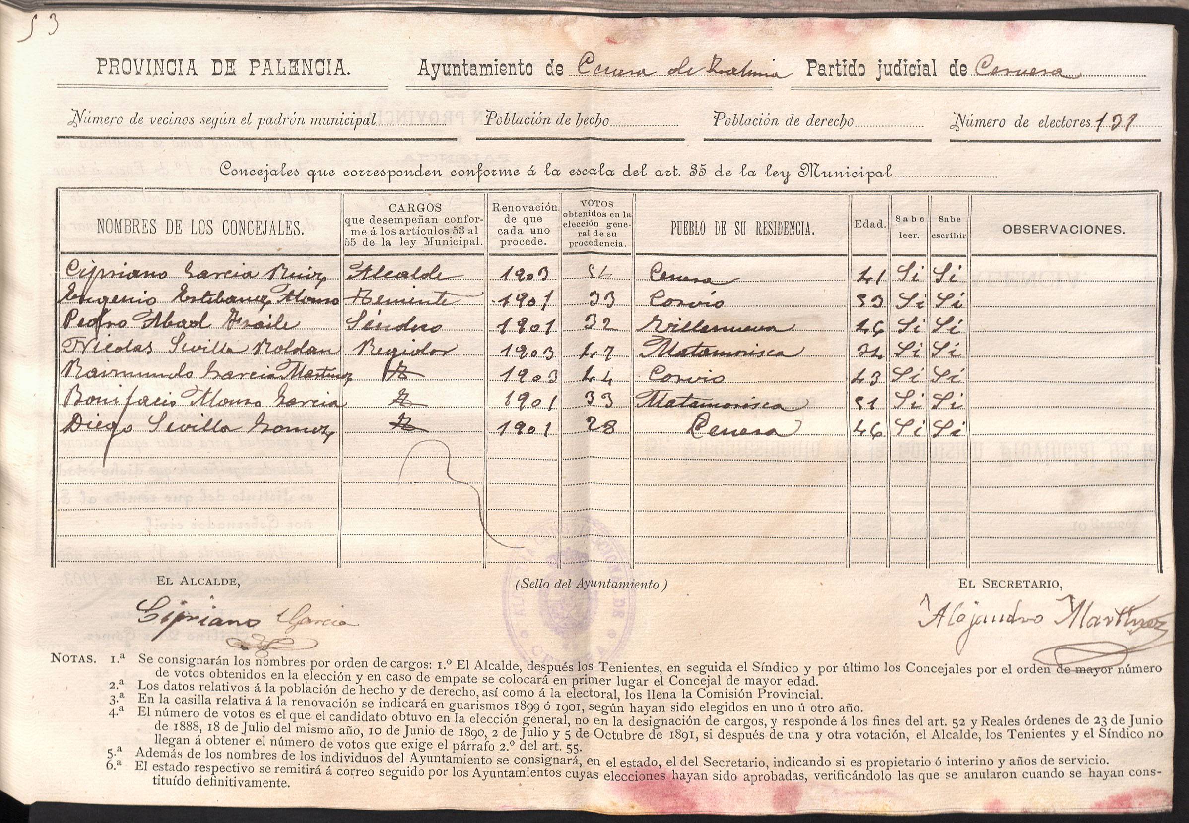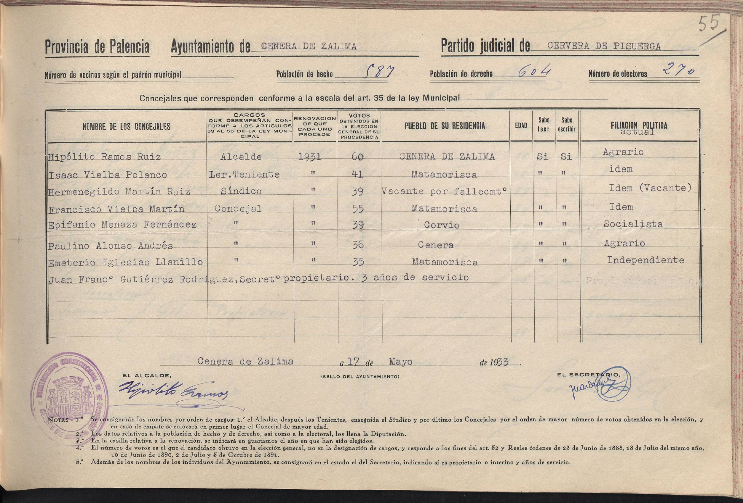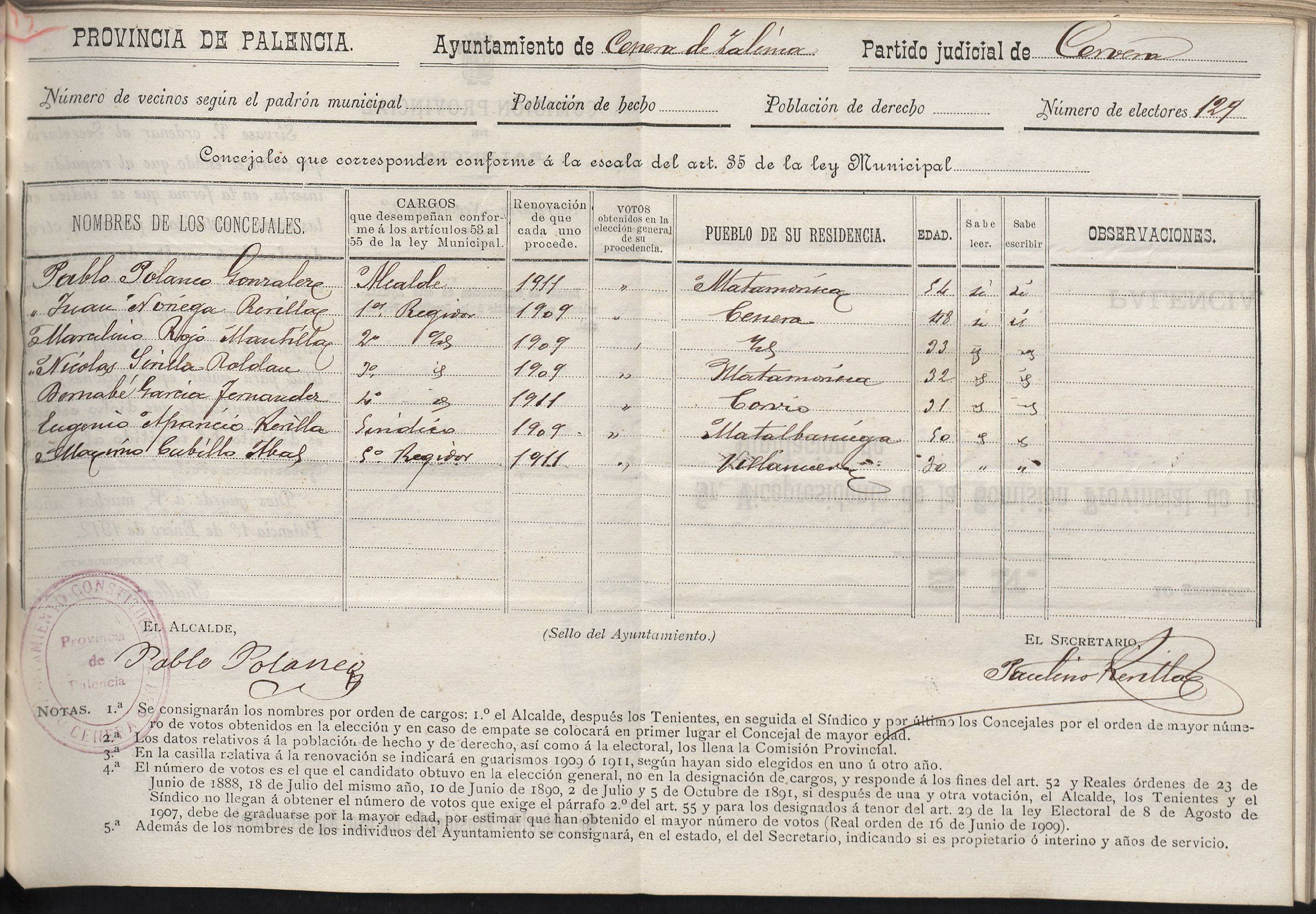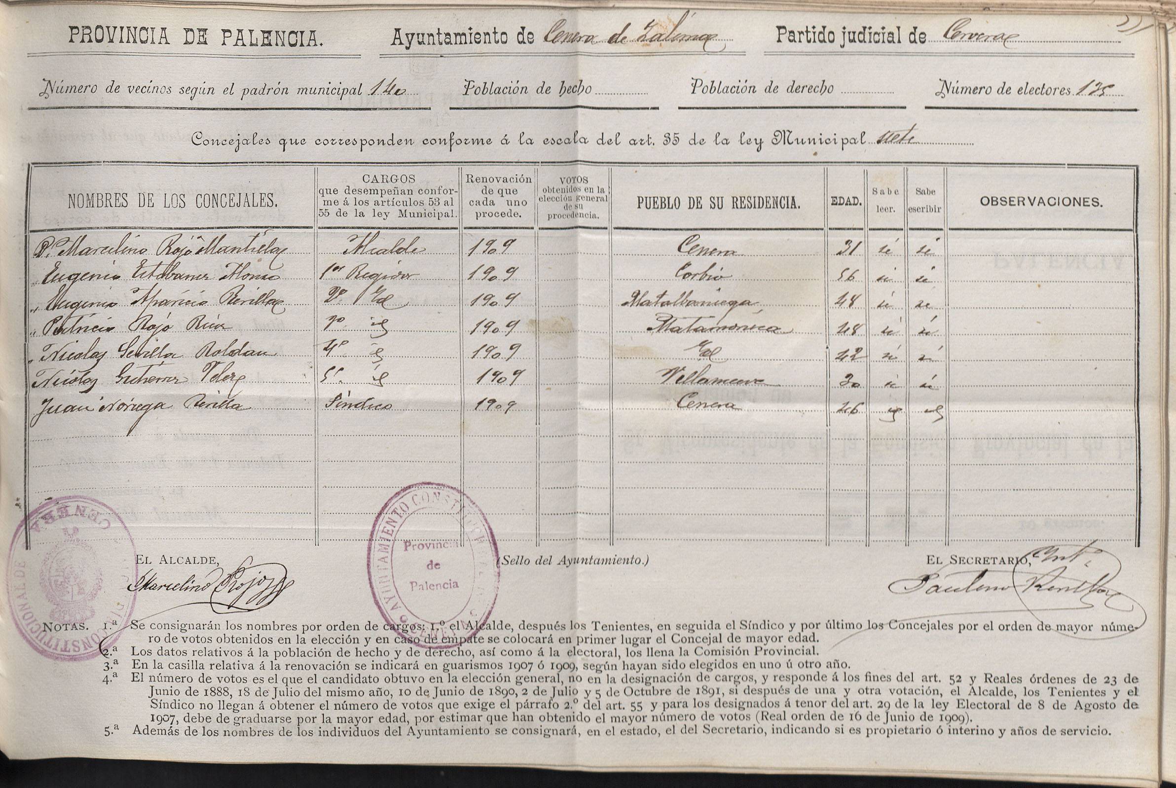Cargos Ayuntamientos: Cenera de Zalima
