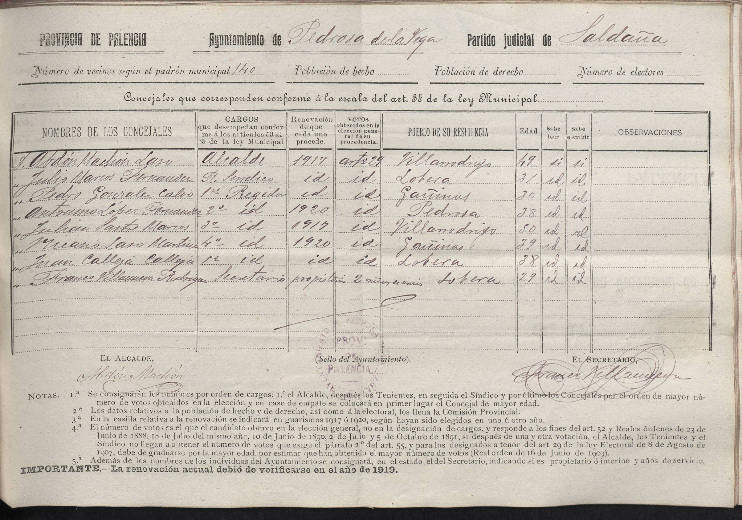 Pedrosa de la Vega 1917