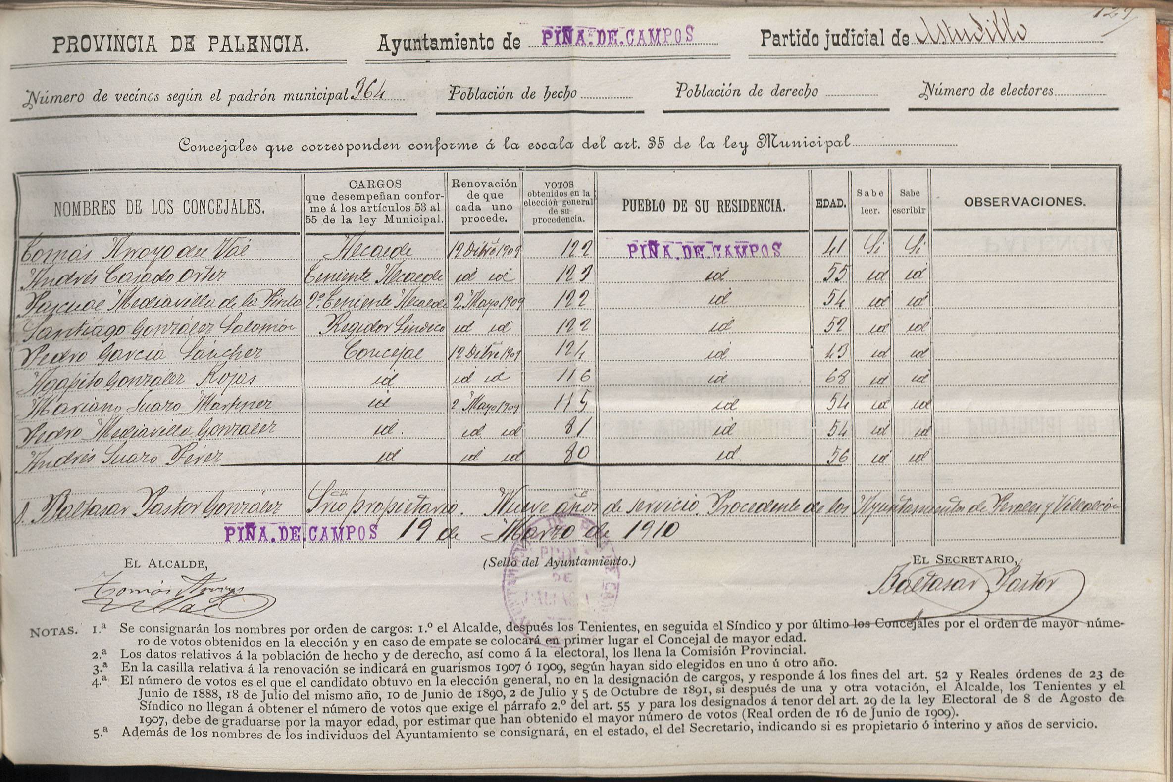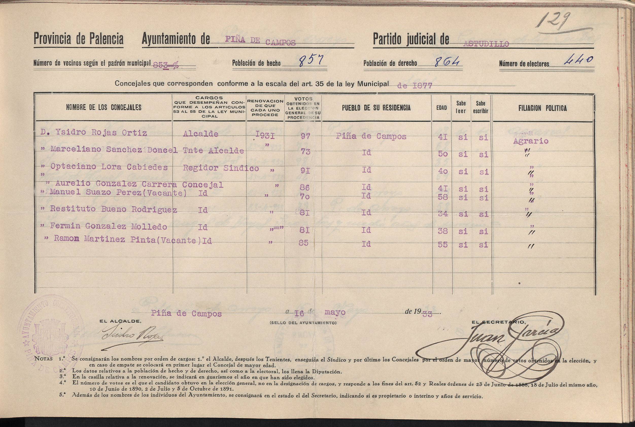 Cargos Ayuntamientos: Piña de Campos