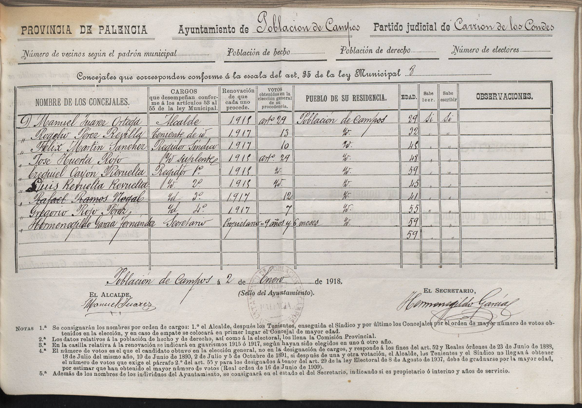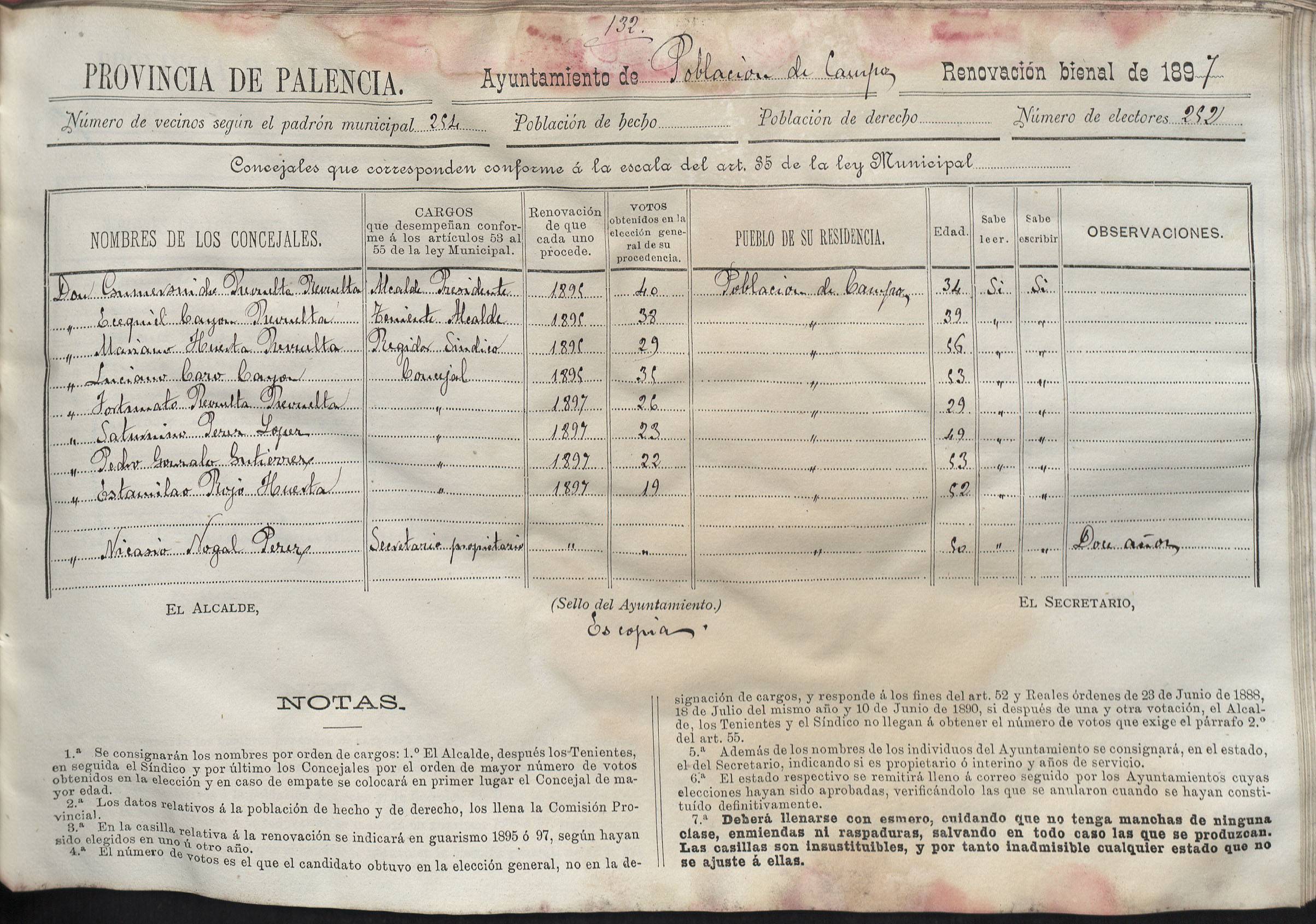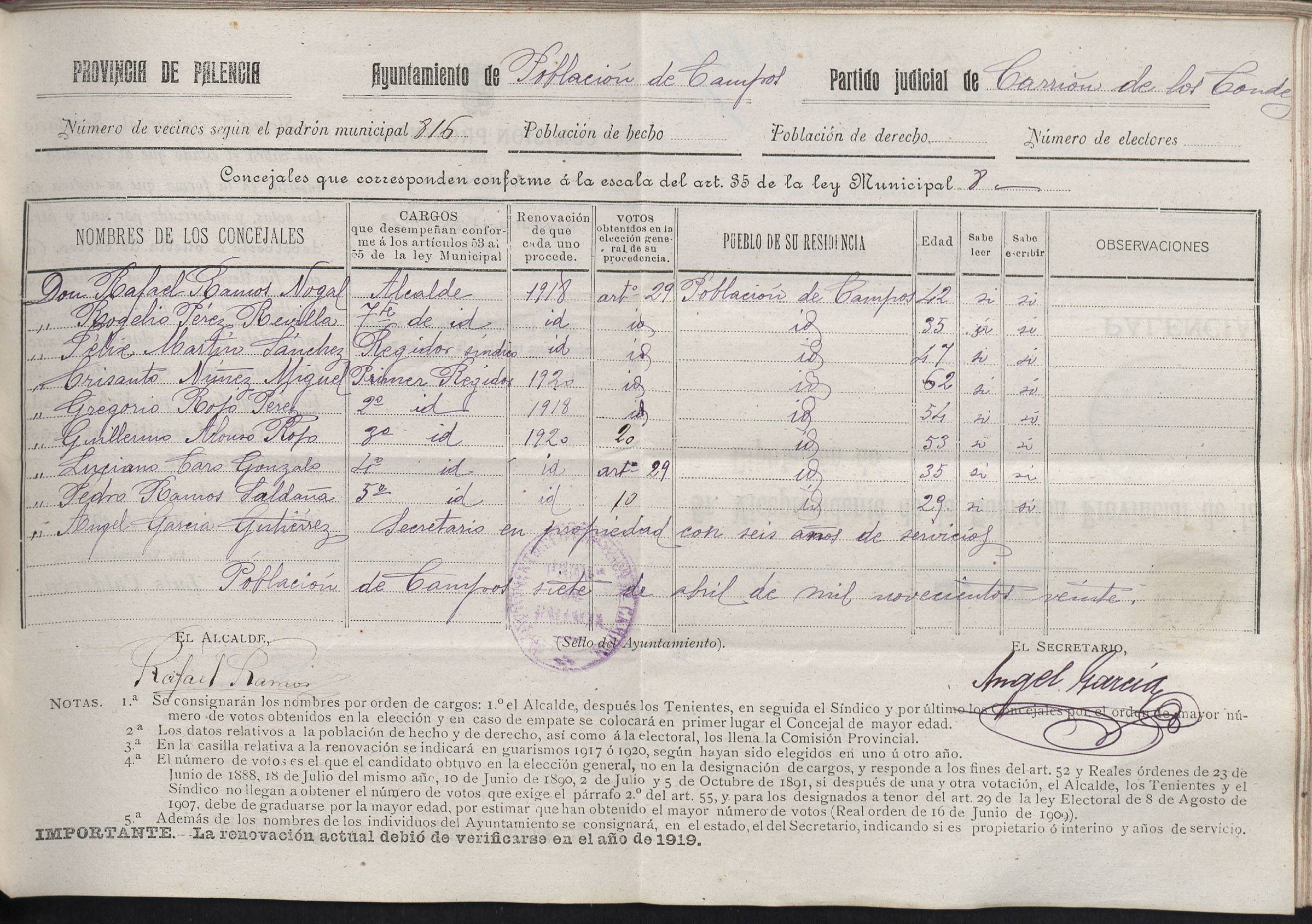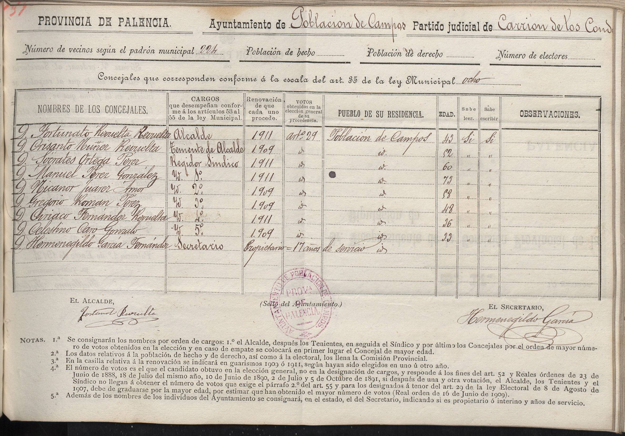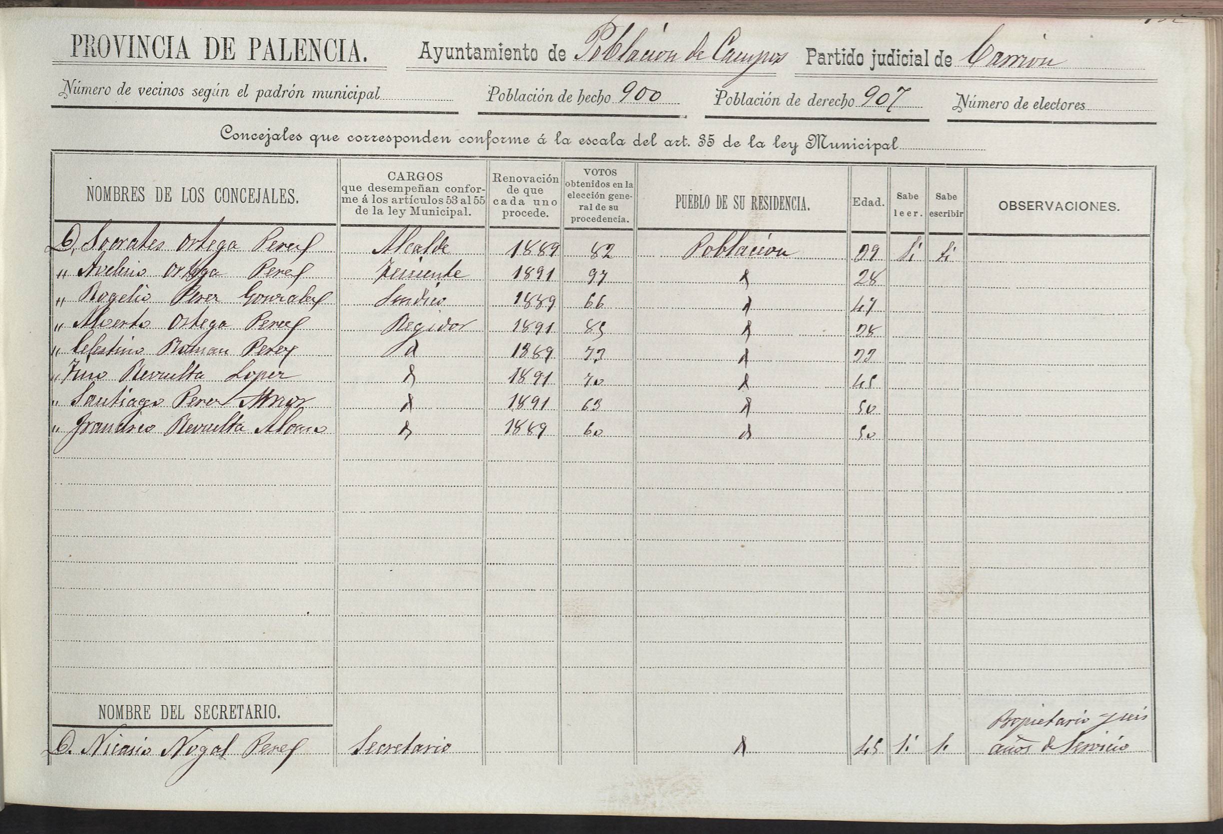Cargos Ayuntamientos: Población de Campos