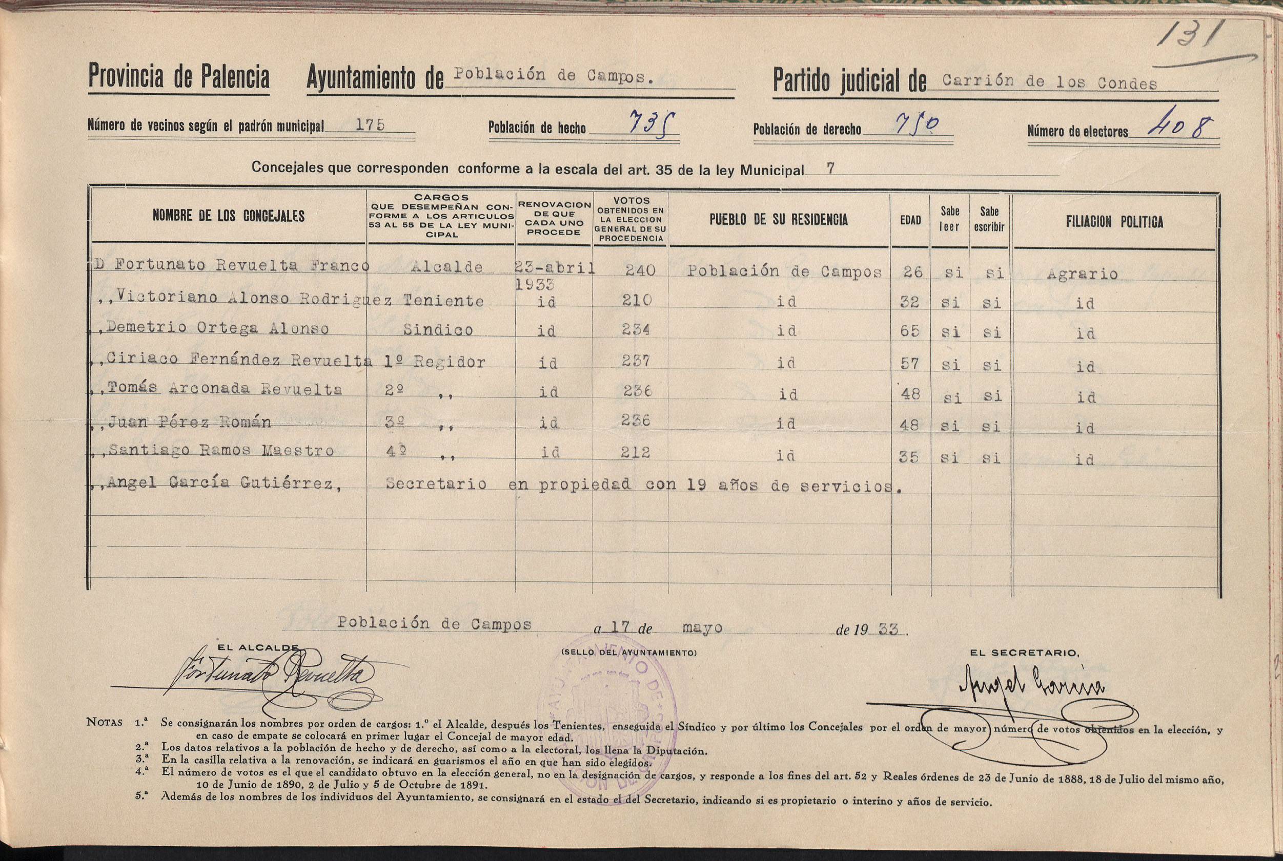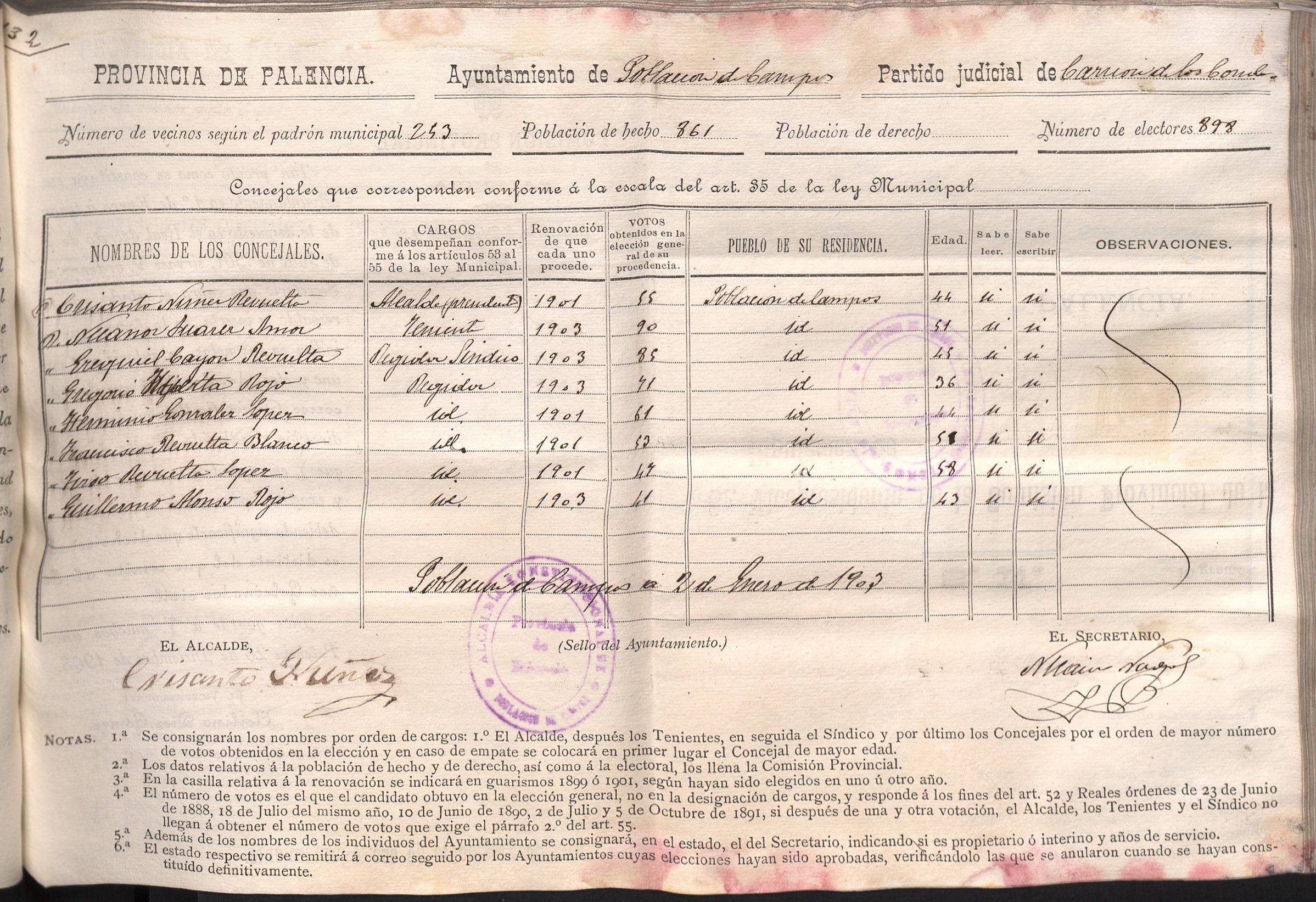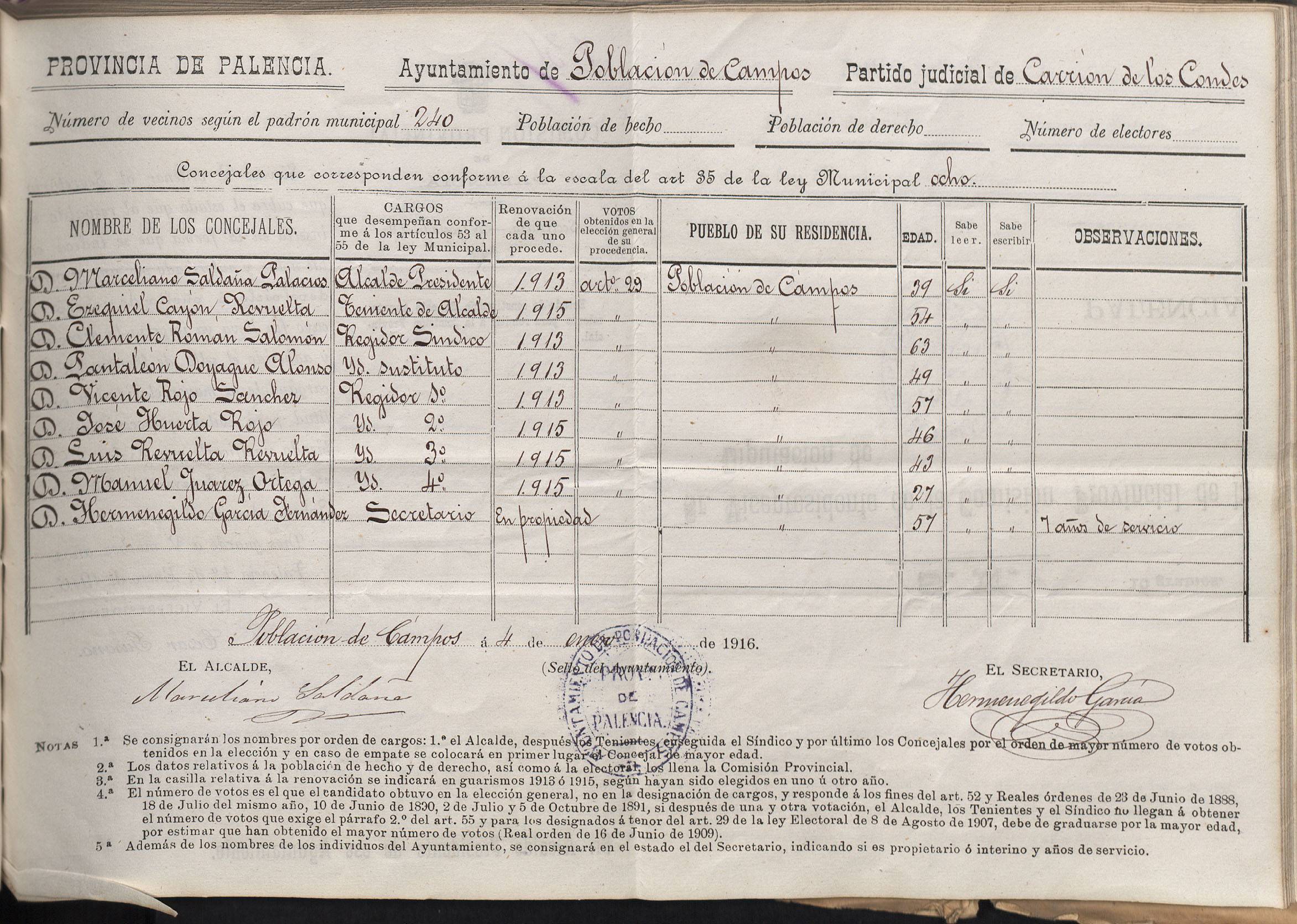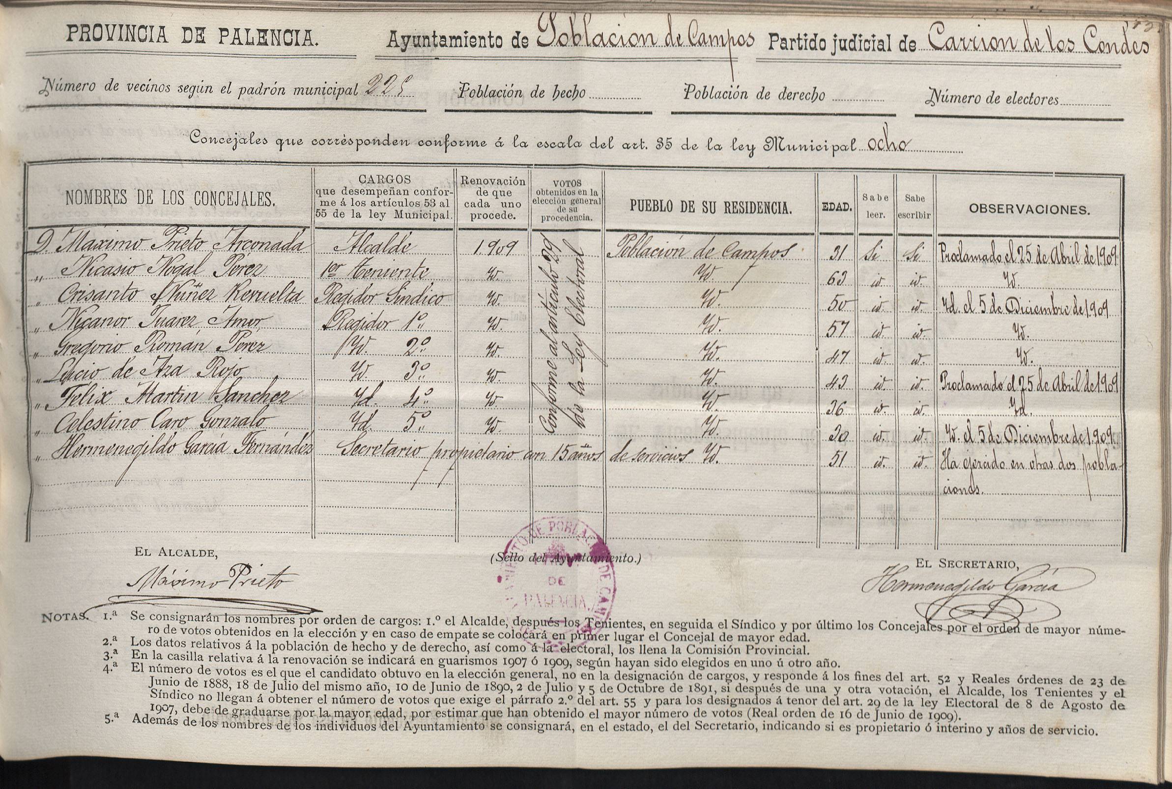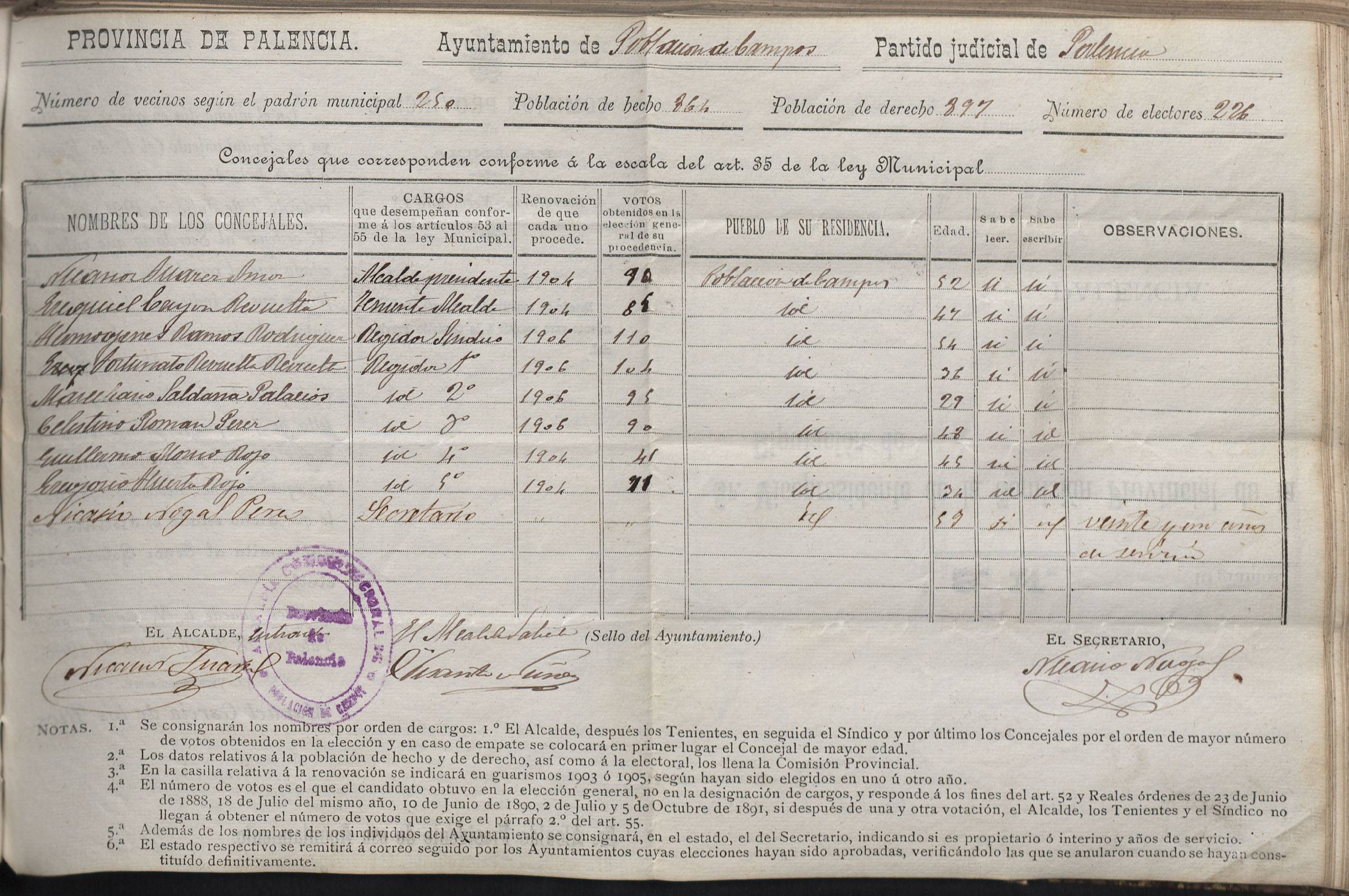 Cargos Ayuntamientos: Población de Campos