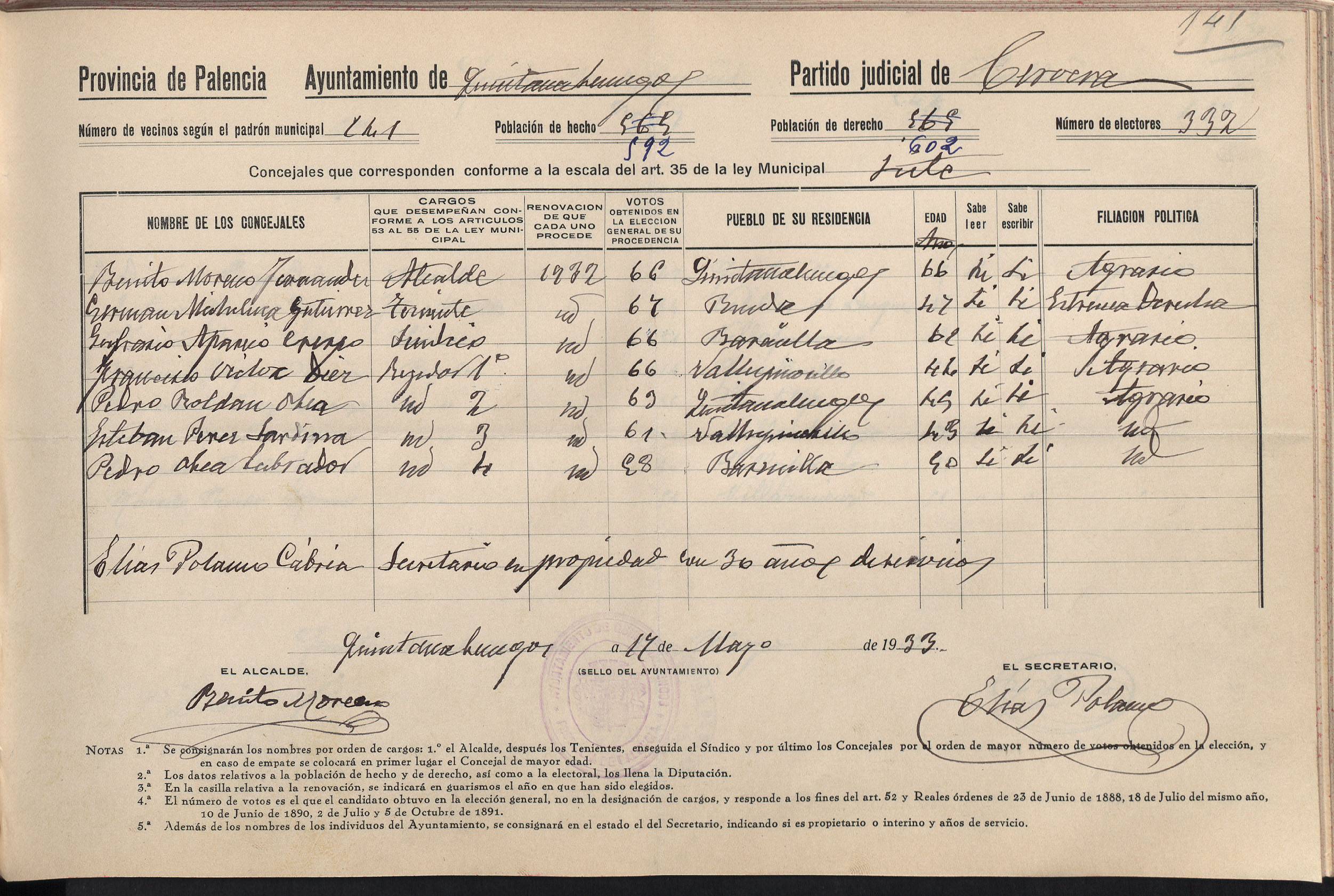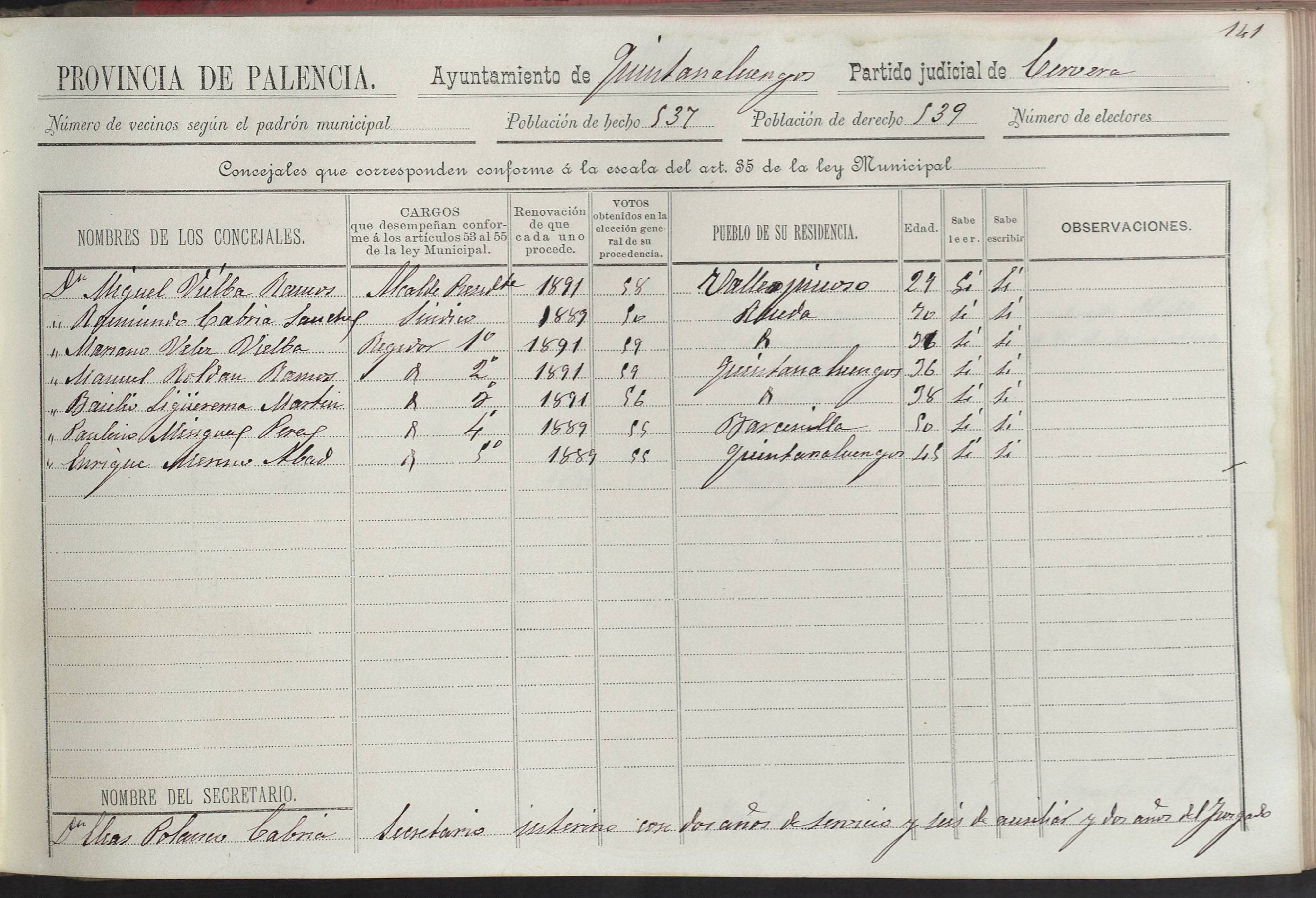 Cargos Ayuntamientos: Quintanaluengos