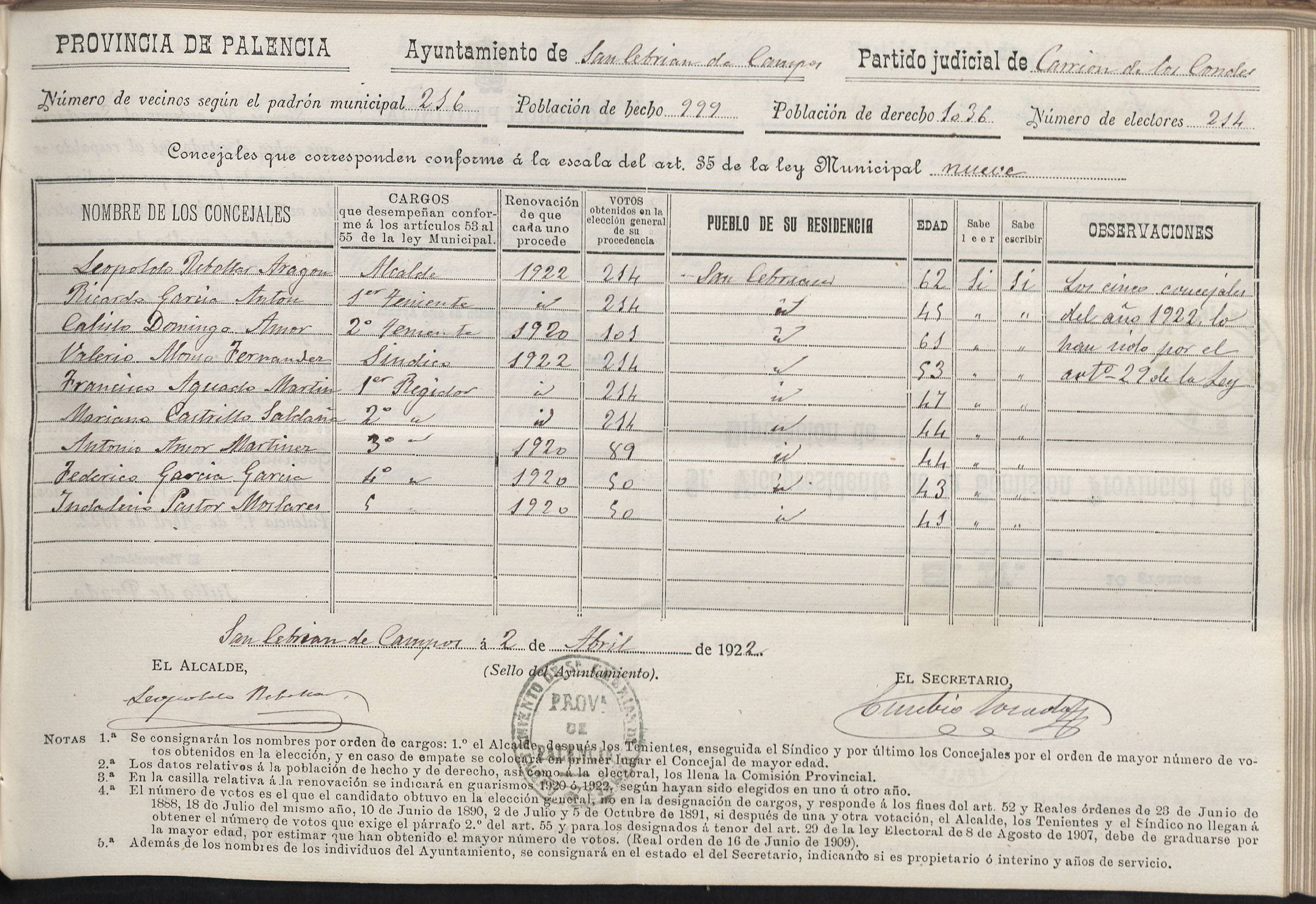 Cargos Ayuntamientos: San Cebrián de Campos