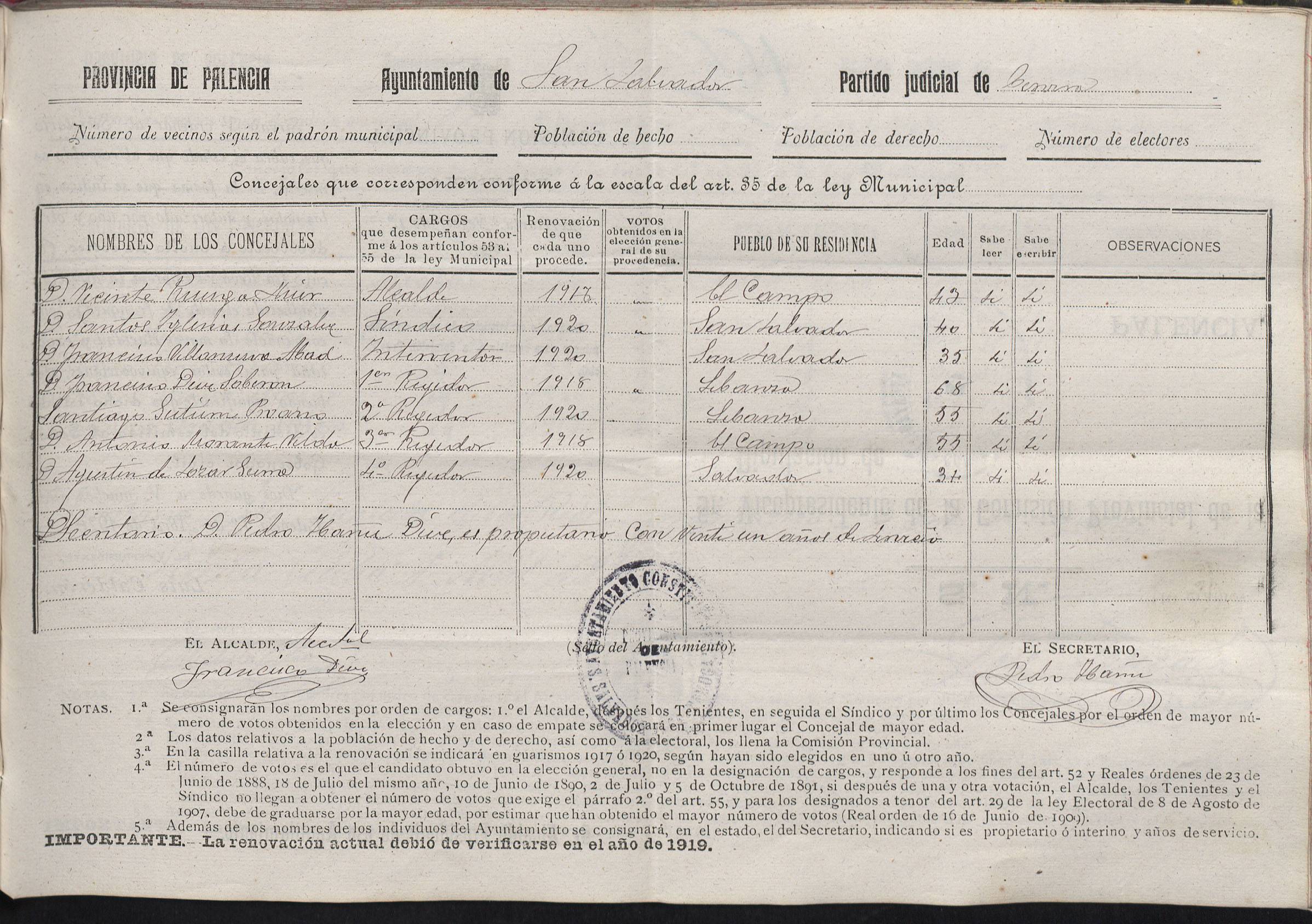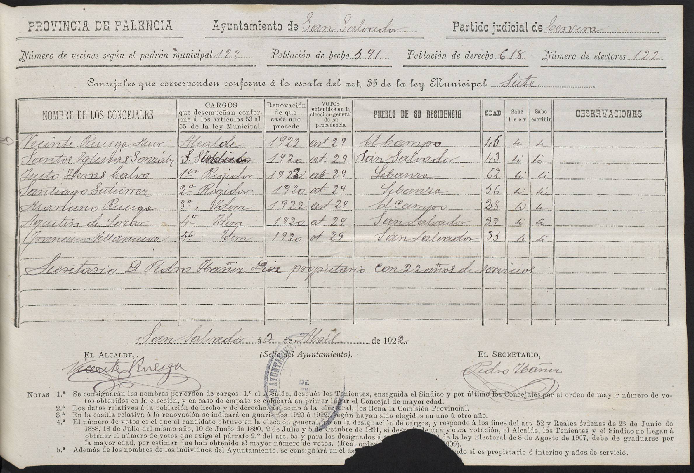Cargos Ayuntamientos: San Salvador de Cantamuda