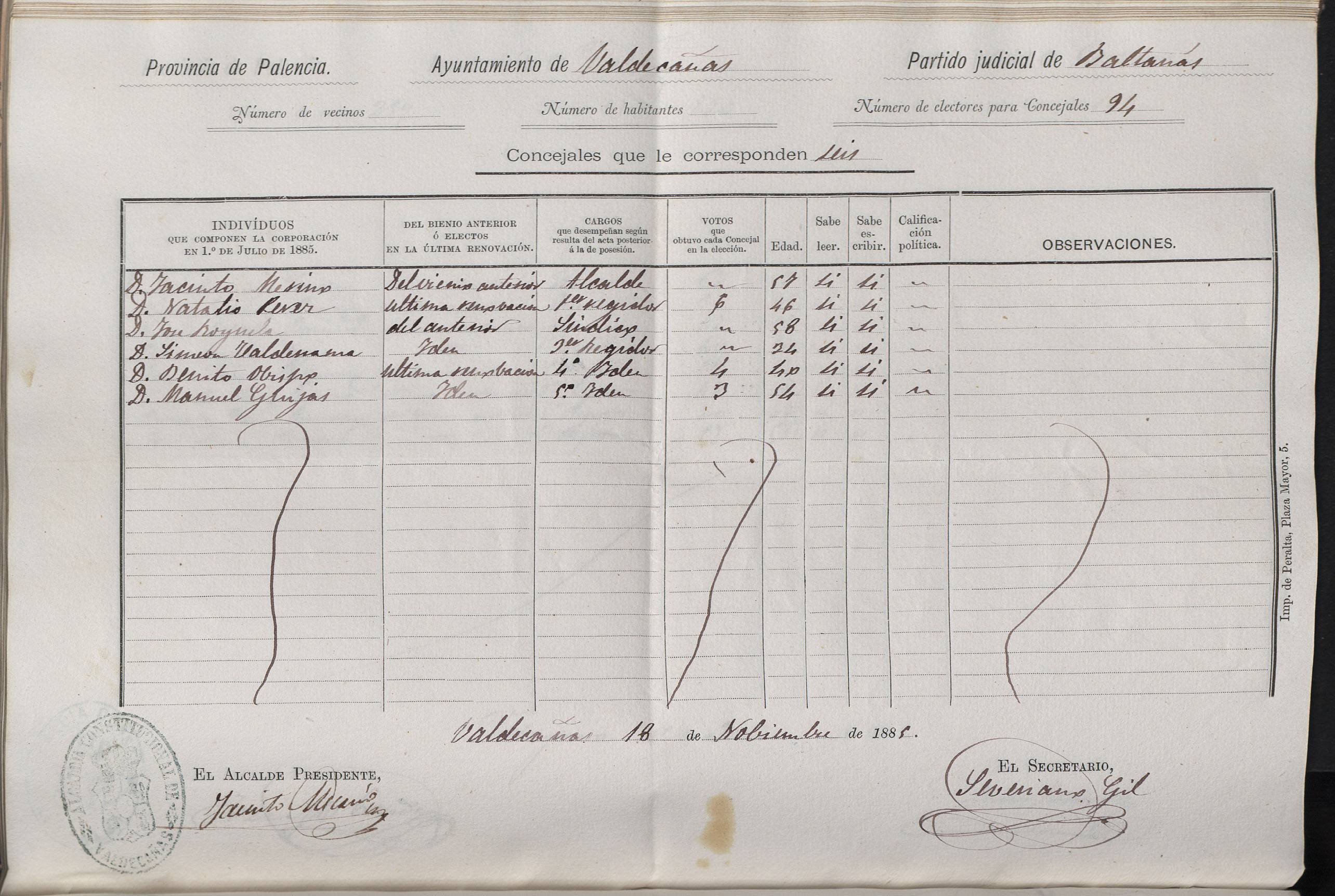 Valdecañas de Cerrato 1885
