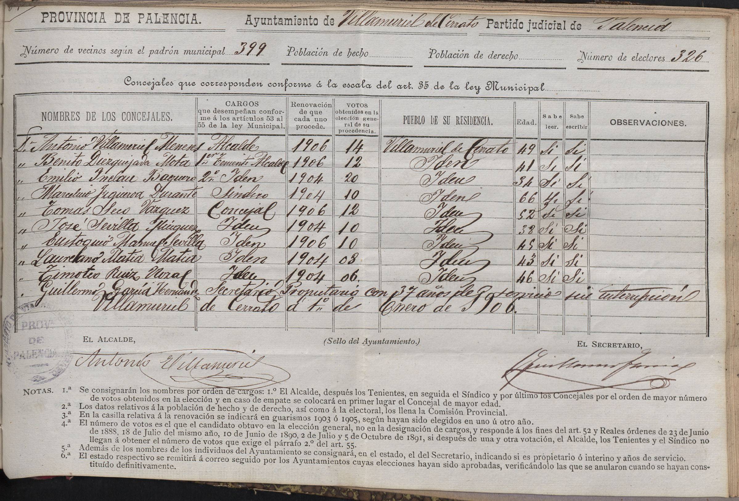 Cargos Ayuntamientos: Villamuriel de Cerrato