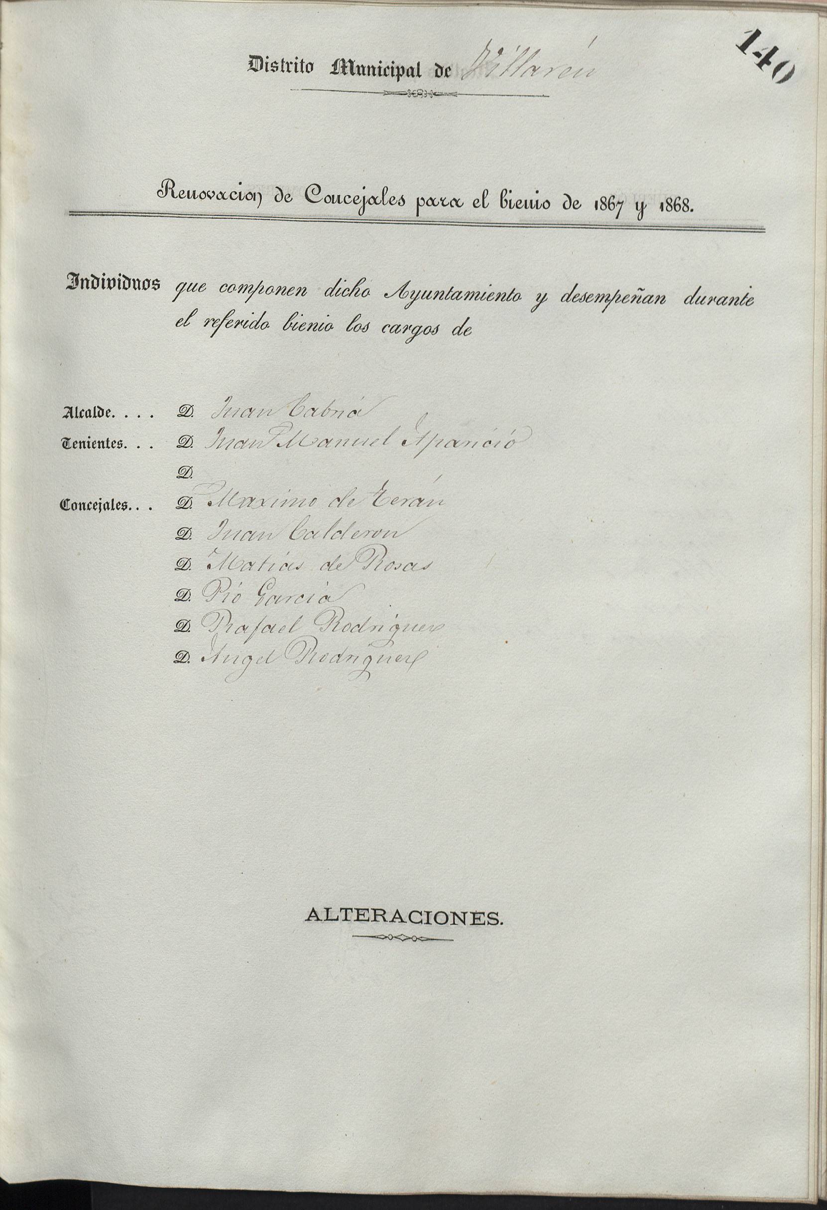 Cargos Ayuntamientos: Villarén de Valdivia