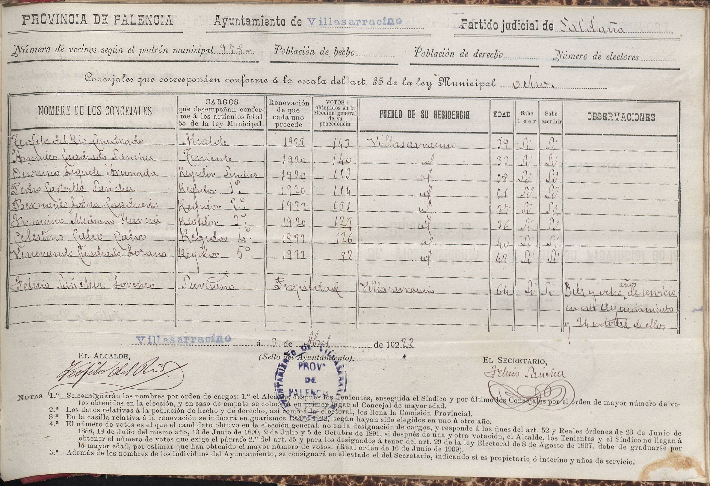 Cargos Ayuntamientos: Villasarracino