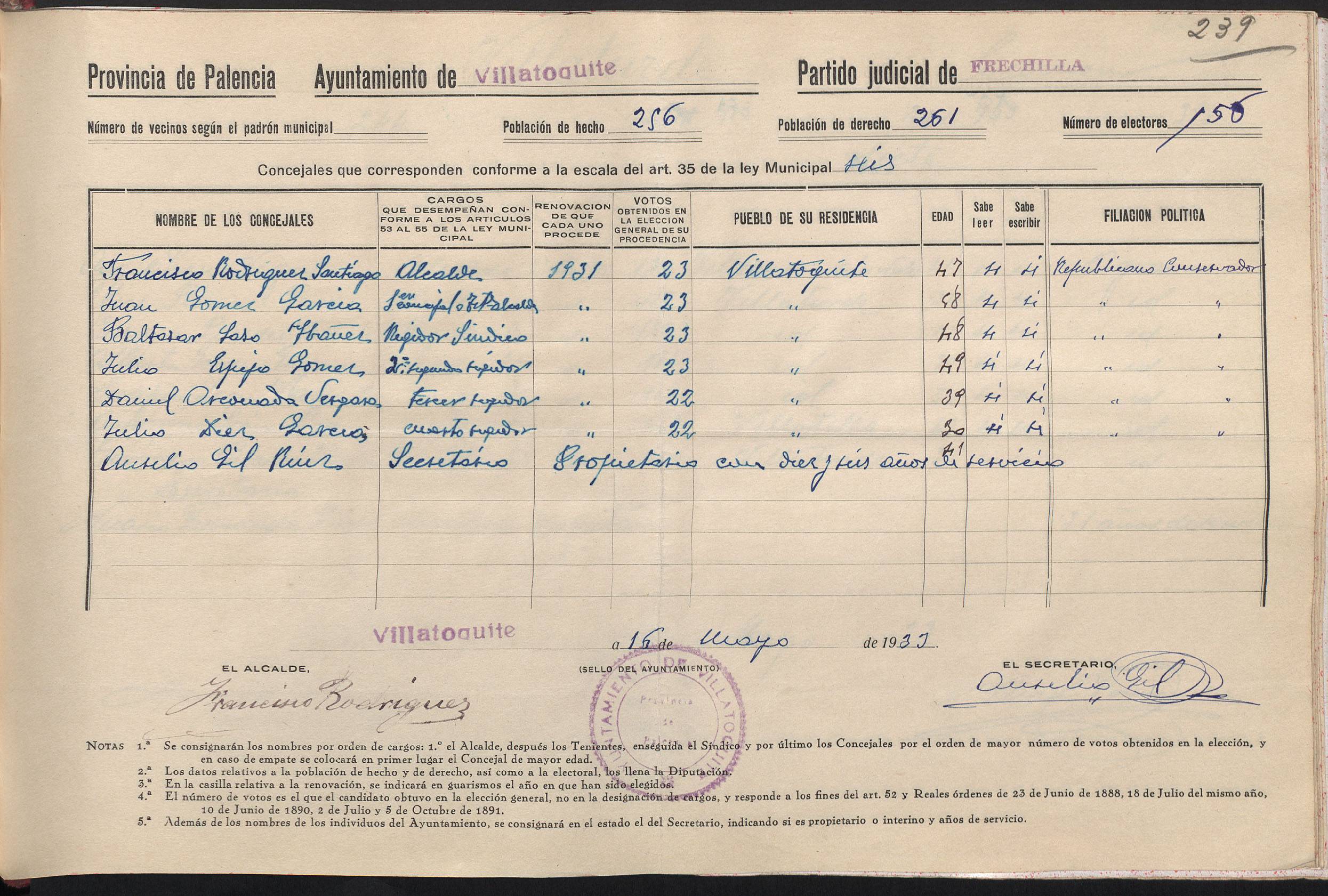 Cargos Ayuntamientos: Villatoquite