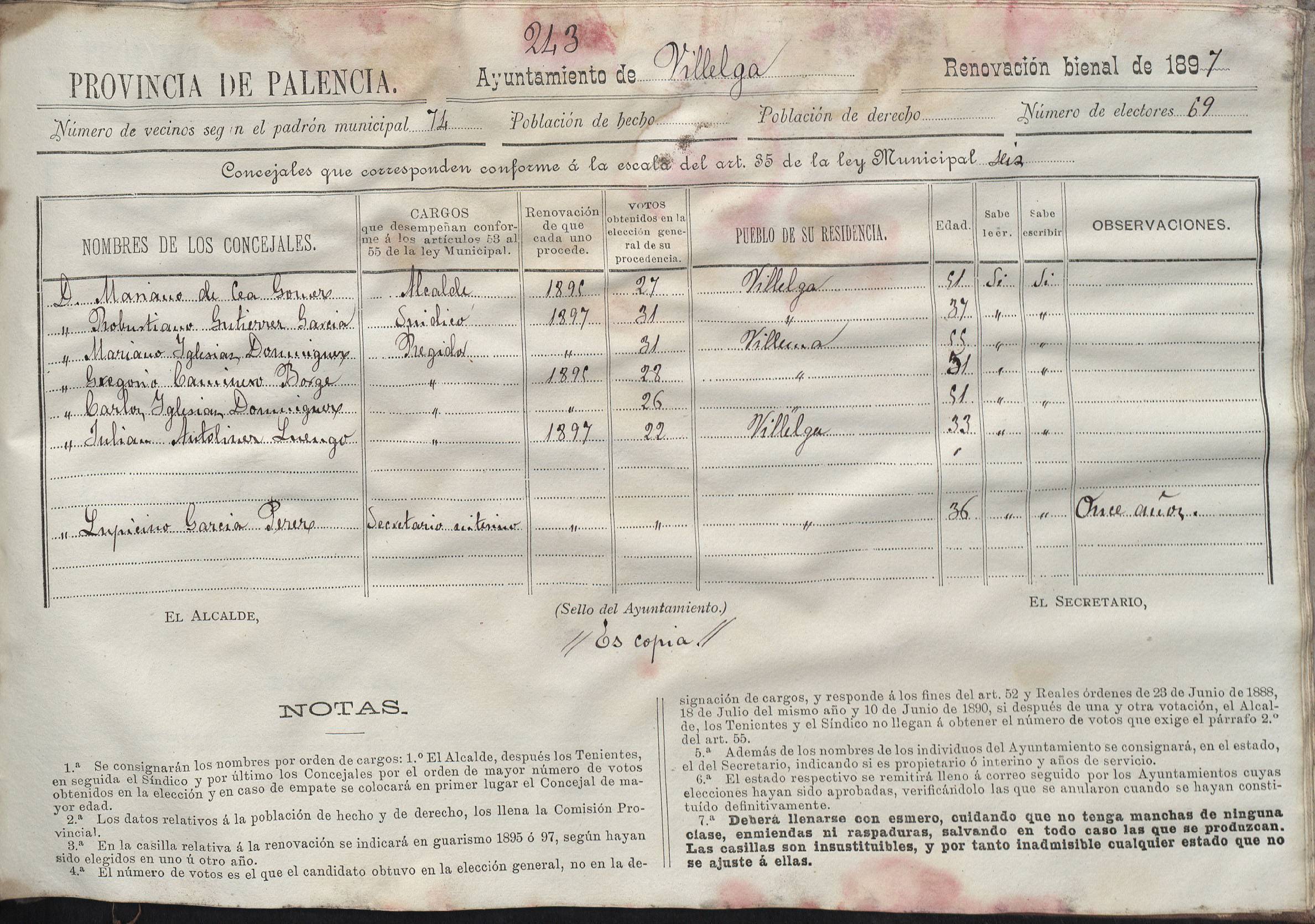 Cargos Ayuntamientos: Villelga