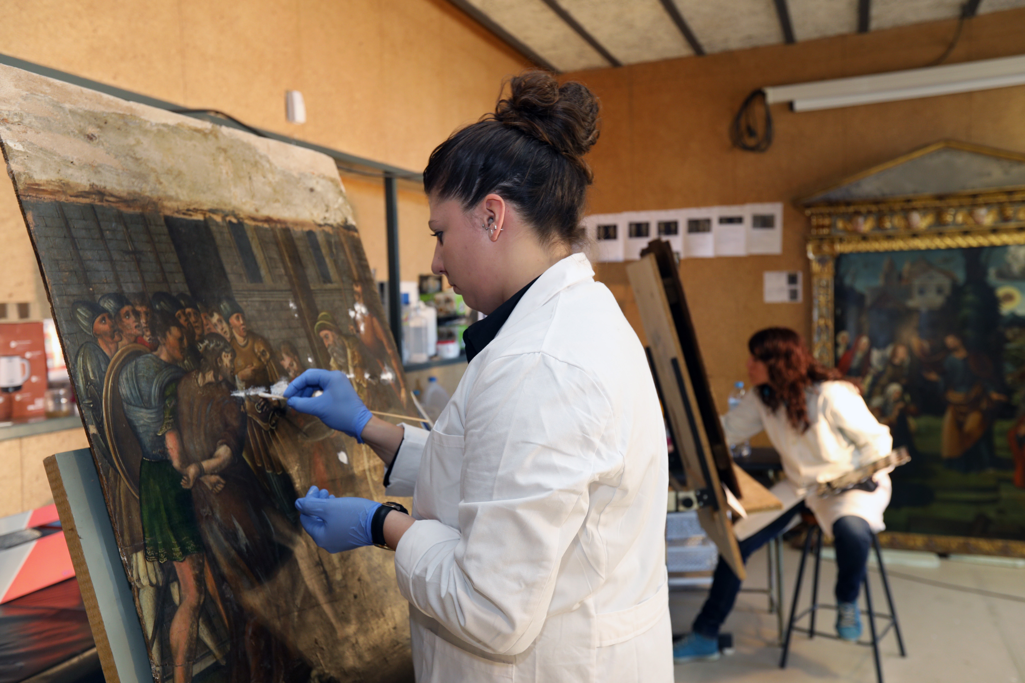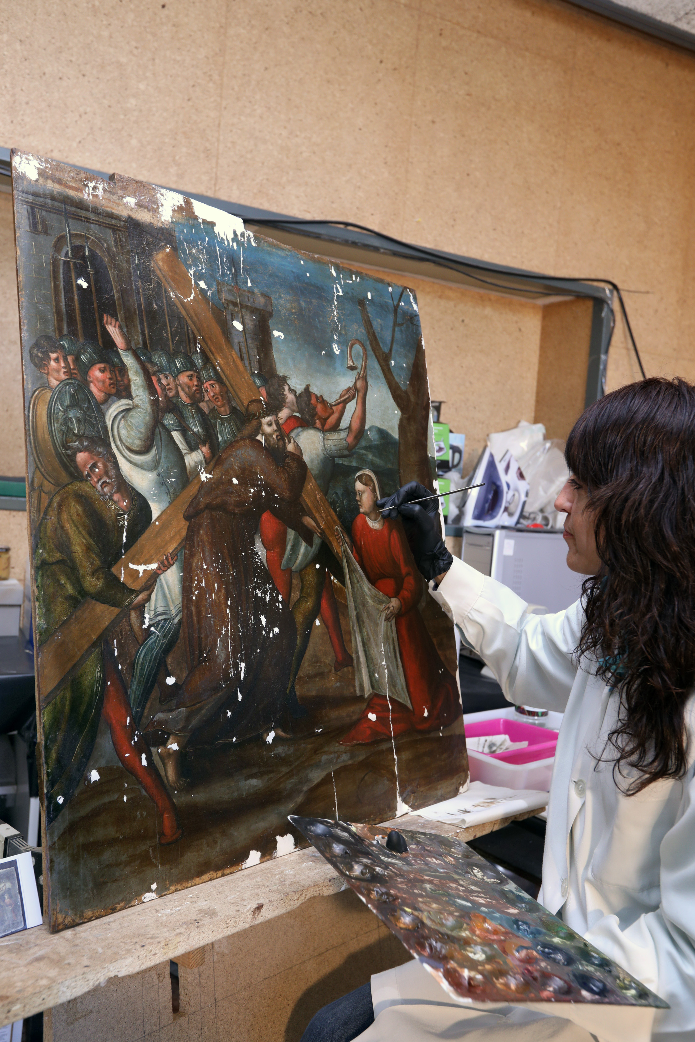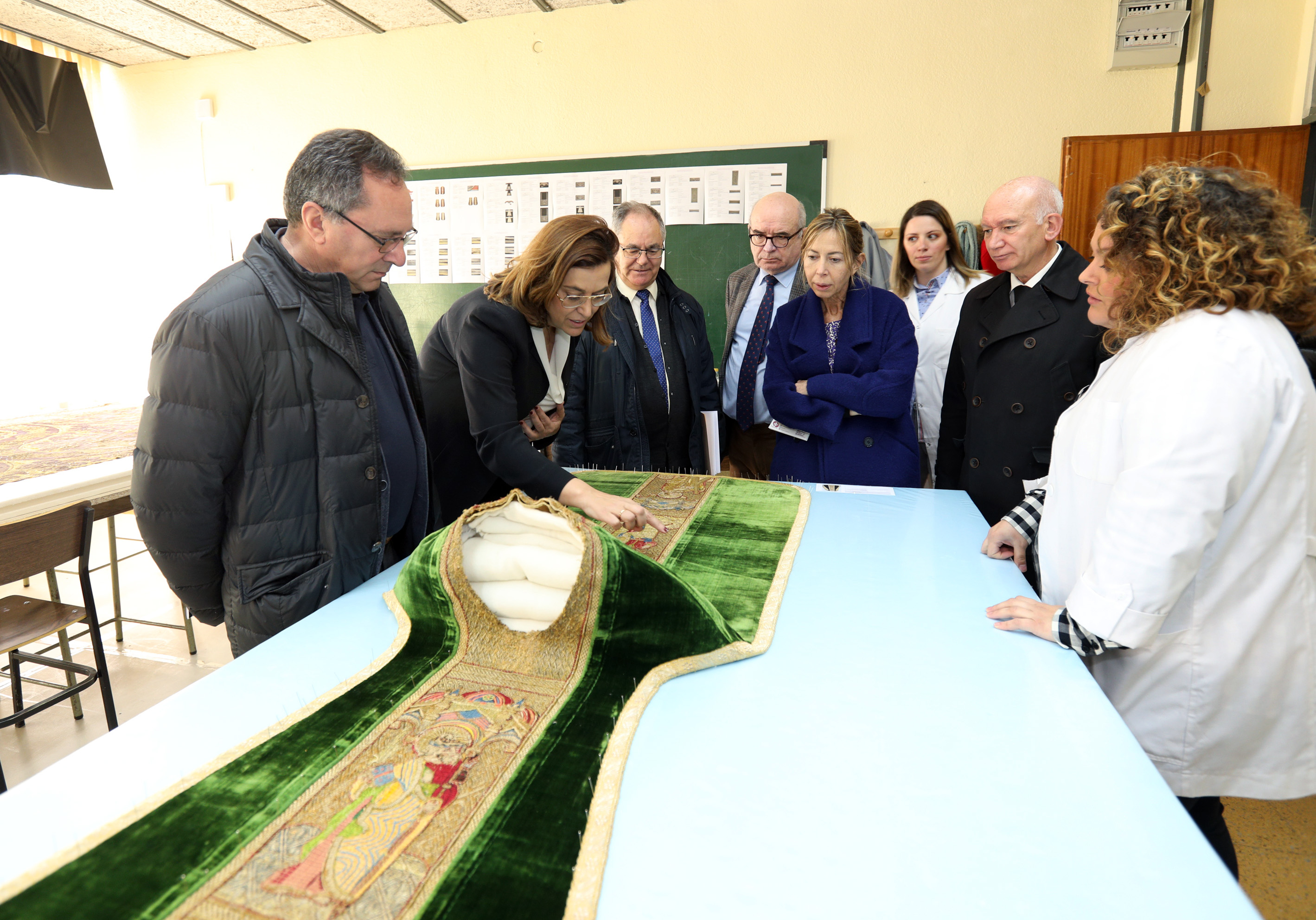 - La inversión con que la Diputación apoya al Obispado en este taller es de 180.000 euros, que hace posible la contratación de 10 restauradores titulados (8 especialistas en pintura y escultura y 2 especialistas en textiles), que trabajan en las labores propias de la recuperación de obras de arte durante un periodo de 6 meses.