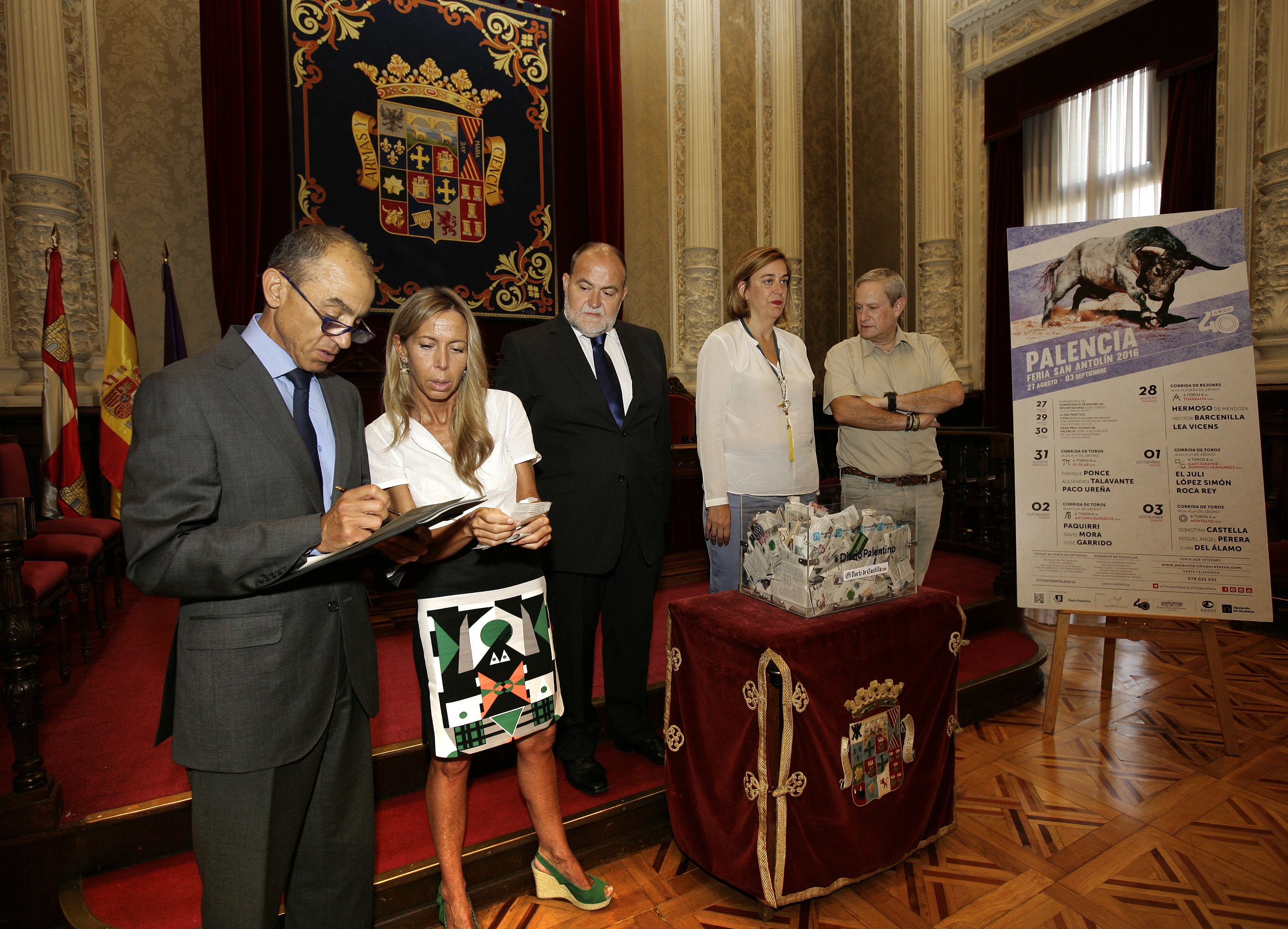 Catorce aficionados verán los festejos taurinos de las ferias de San Antolín desde el burladero gracias al sorteo organizado por la Diputación en colaboración con El Norte de Castilla y Diario Palentino celebrado esta mañana en el Palacio Provincial