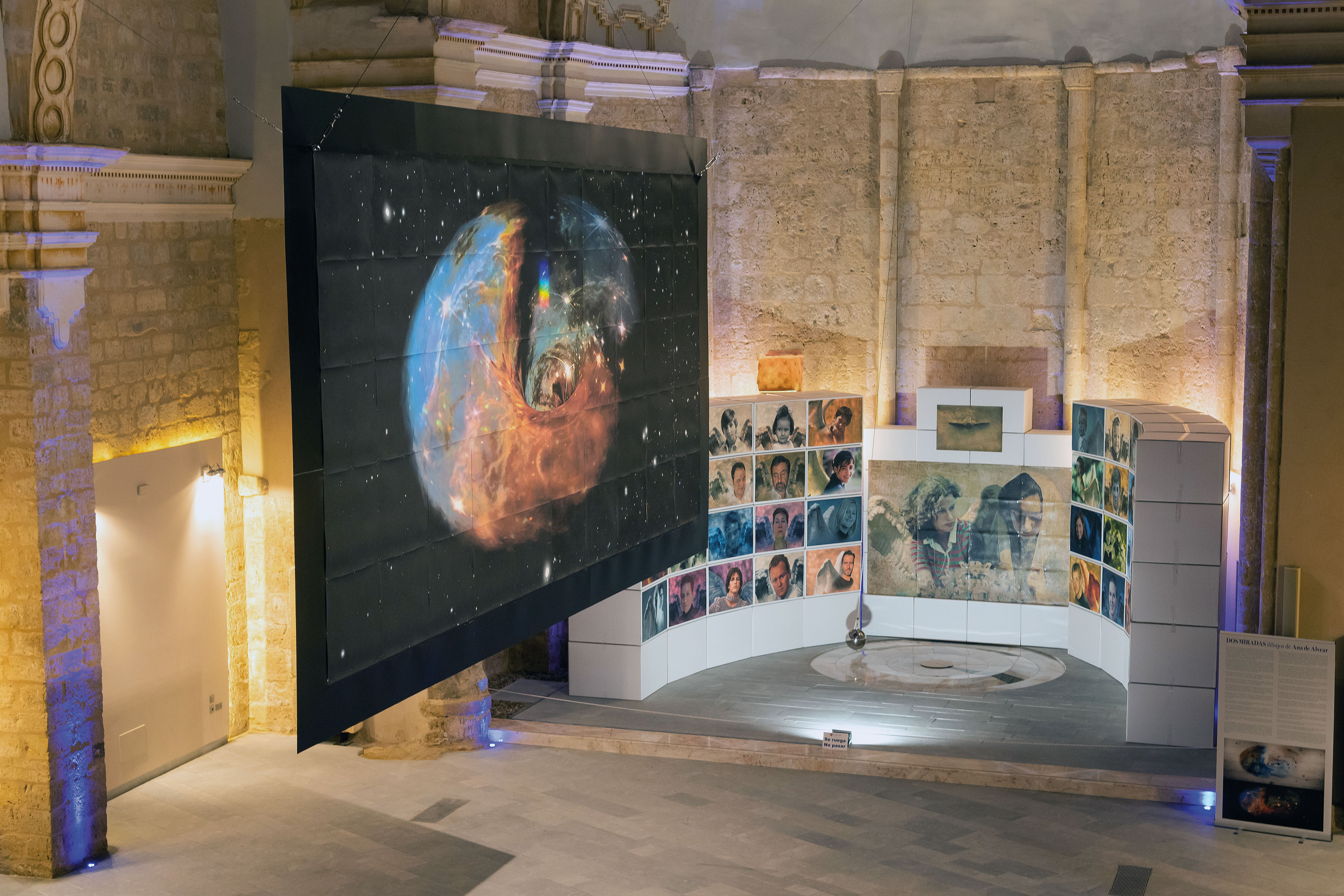 Ana de Alvear se desplazó esta mañana a Becerril de Campos para la inauguración, acto en el que también participaron la presidenta de la Diputación de Palencia, Ángeles Armisén, el alcalde de Becerril de Campos y diputado provincial de Turismo, Francisco Pérez Castrillo; y la diputada provincial de Cultura, Turismo y Deporte, Carolina Valbuena. “Dos miradas” plantea el diálogo en San Pedro Cultural de dos visiones del mundo: la teoría científica sobre los orígenes del universo y el pensamiento religioso, unidos por el ir y venir del péndulo de Foucault que cuelga en la sala, símbolo de los asuntos humanos.