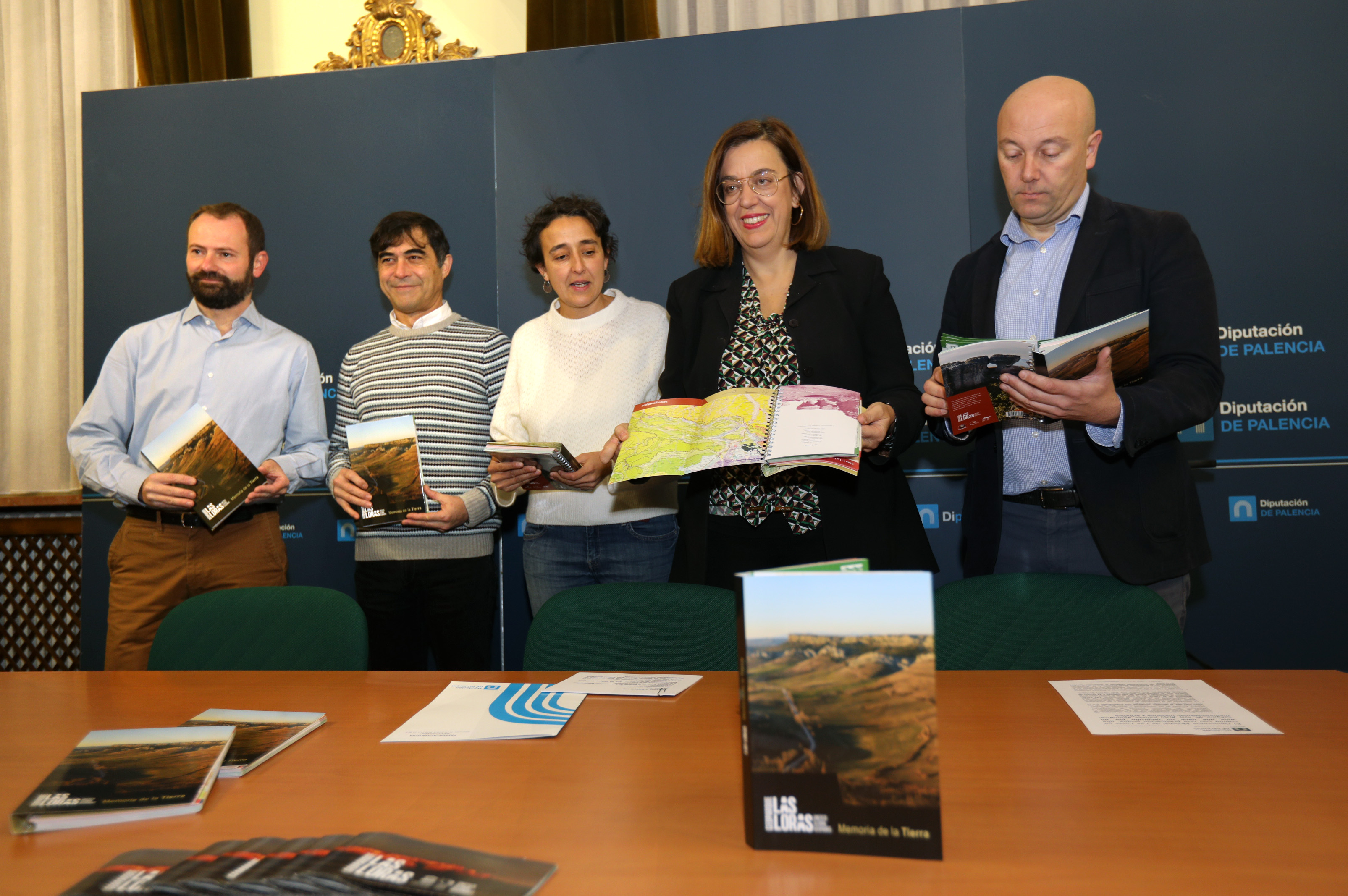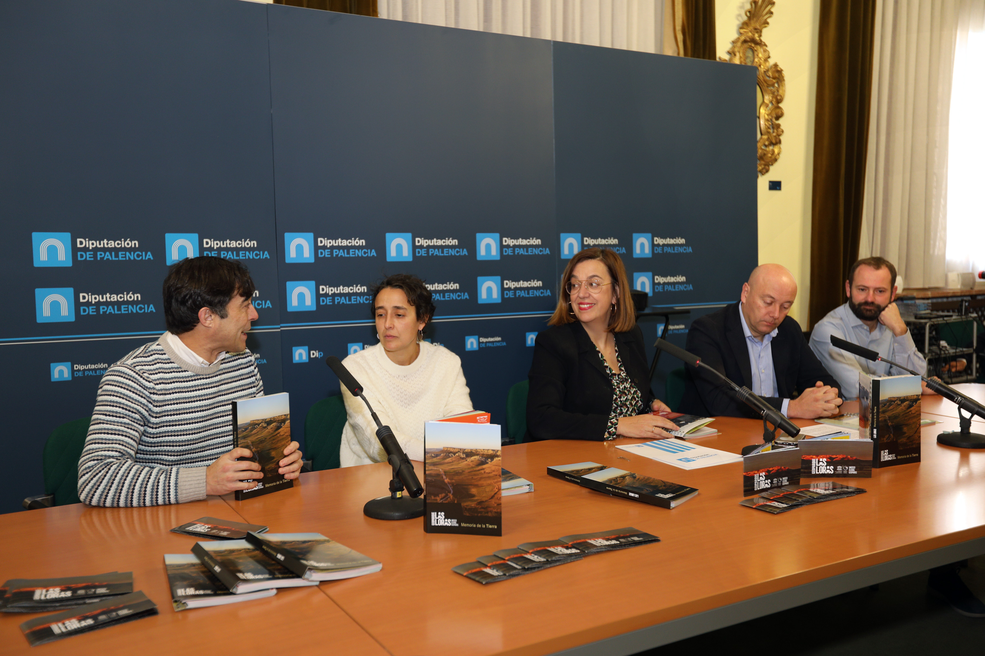 La presidenta de la Diputación de Palencia y del Geoparque, Ángeles Armisén, acompañada del presidente y de la gerente de Argeol, Javier Basconcillos, Karmah Salman, respectivamente y del representante de la edición, Wifredo Román, de Aruz Ediciones, fueron los encargados de presentarla. Las Loras: Memoria de la Tierra, es el título con que Aruz Ediciones presenta la publicación, con la quese da el primer paso en la difusión, un recorrido a través de 180 páginas y 44 puntos de interés por el Geoparque Mundial Unesco Las Loras, un territorio fascinante, que ofrece una gran riqueza geológica, medioambiental, histórica y artística. 275 fotografías ilustran la publicación,a demás de dibujos, esquemas o cartografía.