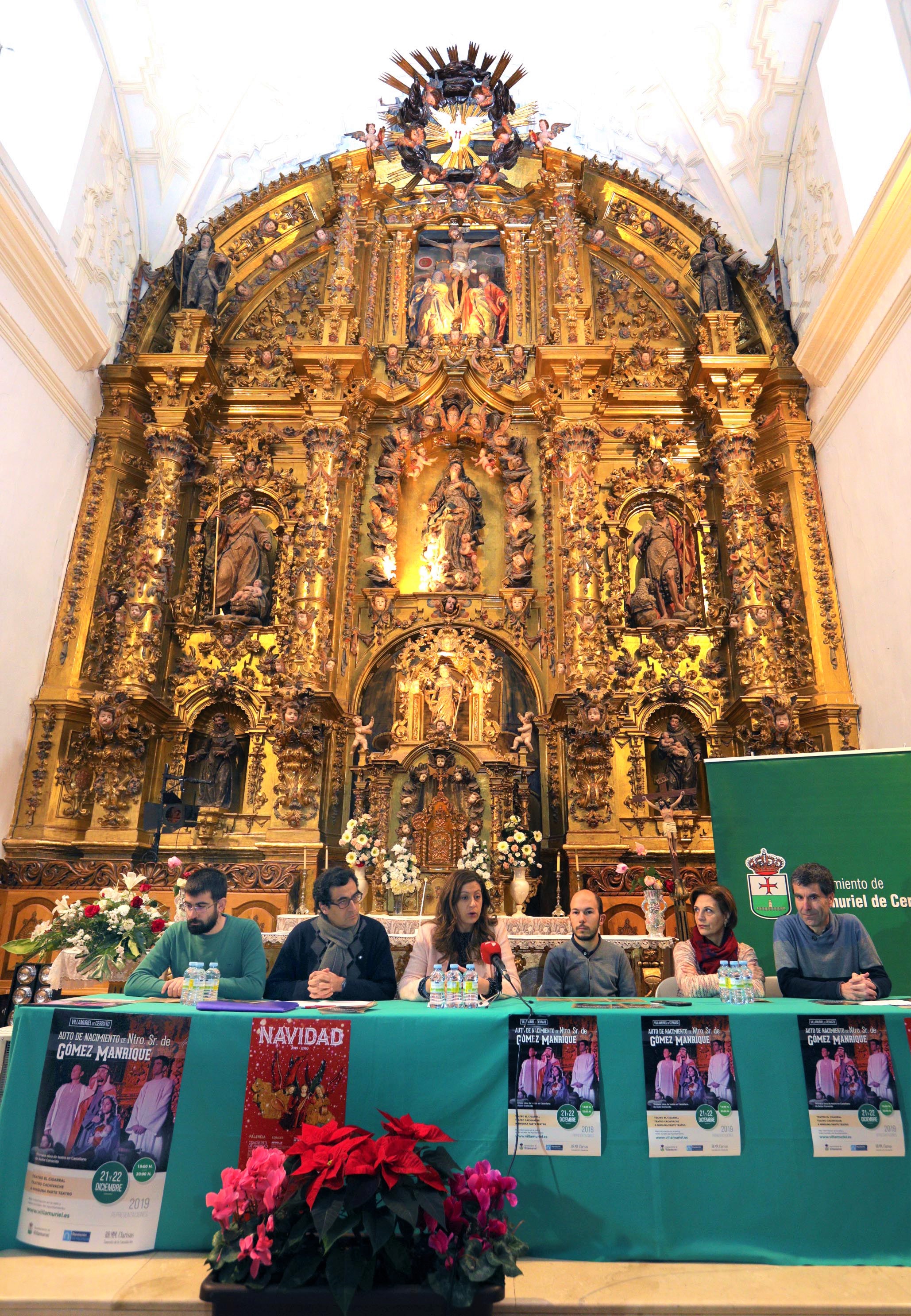 • La diputada de Cultura, Carolina Valbuena; junto al alcalde de Villamuriel de Cerrato, Roberto Martín, el concejal de Humanidades y Turismo, Juan Antonio Obispo y los representantes de las tres compañías teatrales implicadas en la representación del Auto del Nacimiento de Nuestro Señor de Gómez Manrique: Cigarral, Cachivache y A ninguna parte teatro; han presentado esta mañana en rueda de prensa todos los detalles de la tradicional obra de teatro que se representa en el Convento de la Consolación de Calabazanos en Villamuriel de Cerrato.