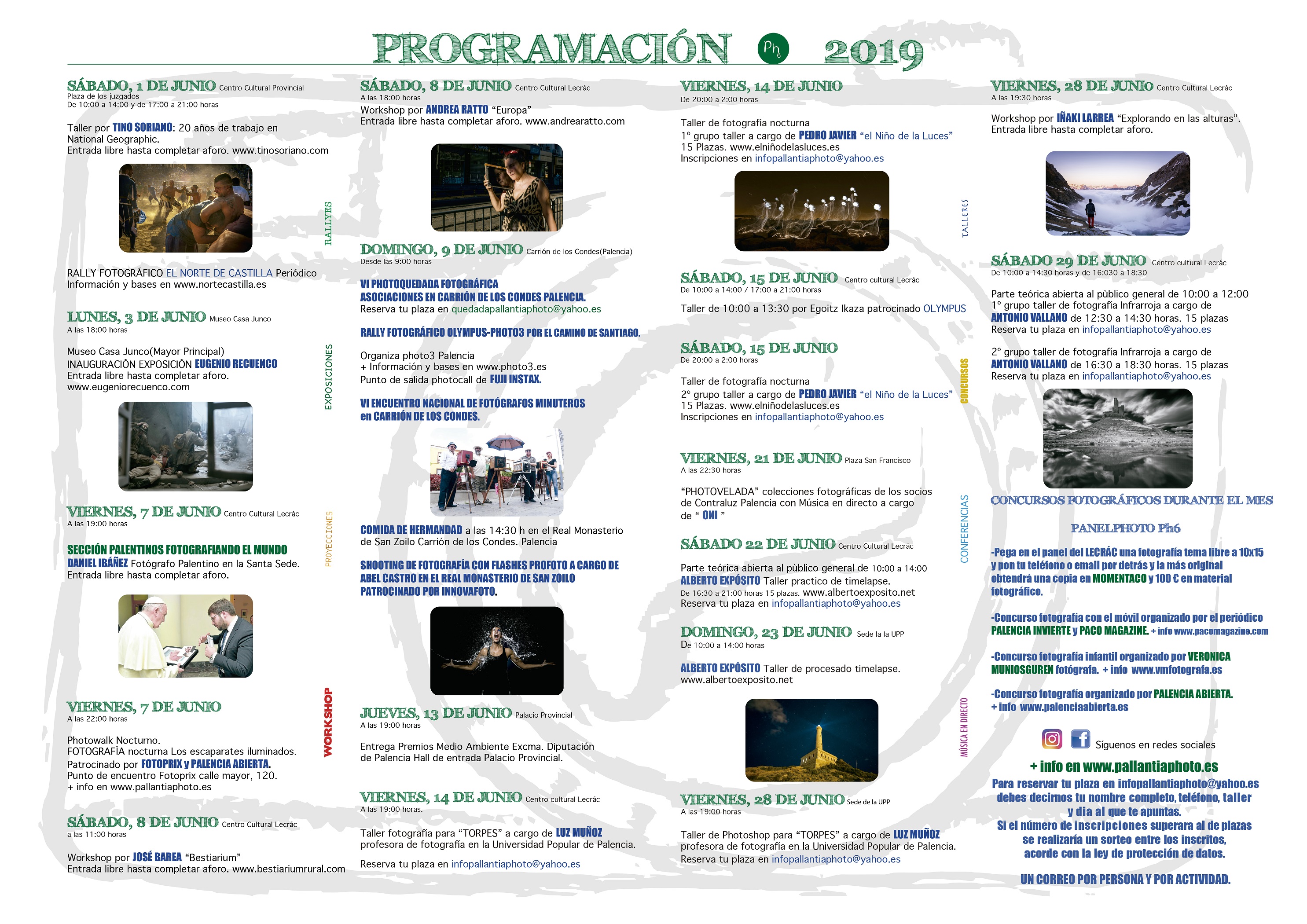 En algunas actividades es necesario reservar plaza, como por ejemplo para los talleres que tienen limitada la participación para el aprovechamiento y buen desarrollo de la actividad. Para solicitar una plaza es preciso remitir correo a la dirección: infopallantiaphoto [at] yahoo.es (infopallantiaphoto[at]yahoo[dot]es).