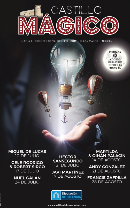 La VIII edición del ciclo ‘Castillo Mágico. Magia en el Castillo de Fuentes de Valdepero’, que forma parte del programa cultural ‘Espiga 2019’ diseñado para la época estival por la Diputación de Palencia, arrancará este miércoles, 10 de julio, con la actuación  de Miguel de Lucas, uno de los artistas de calle con más experiencia de España y presentador del programa de tve ‘Un país mágico’.