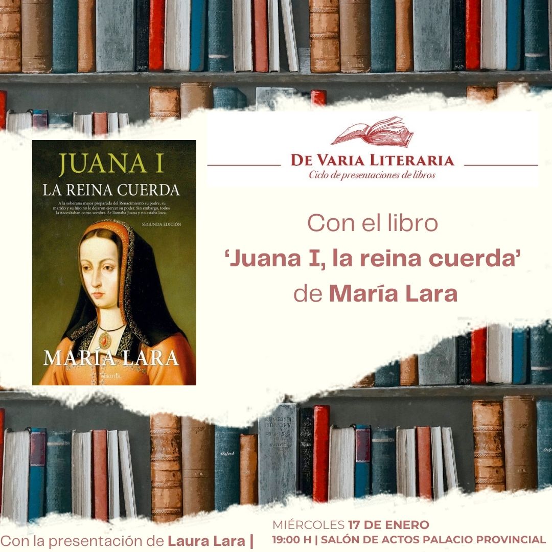Este miércoles 17 de enero el Salón de Actos del Palacio Provincial volverá a acoger el ciclo de presentaciones de libros llamado ‘De Varia Literaria’ con la obra ‘Juana I, la reina Cuerda’ de la escritoras e historiadoras, las hermanas María y Laura Lara. El acto comenzará a las 19.00 horas con entrada libre y la posterior firma de ejemplares.