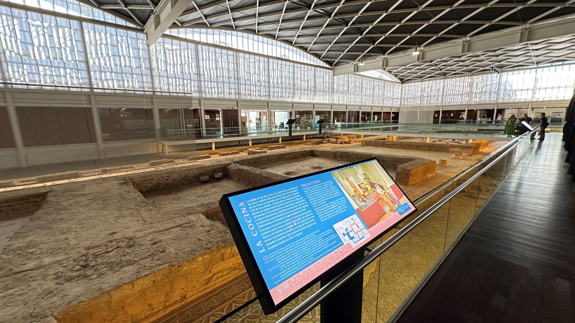 • Para llevarlo a cabo, se han instalado 17 paneles retroiluminados que incluyen una sección con información bilingüe en castellano e inglés en cada uno de los puntos destacados del yacimiento, con información didáctica relativa al yacimiento y su historia. Además, cuentan con códigos QR para ver in situ audiovisuales con Marciano, el villicus de la villa, haciendo de cicerone, y subtítulos para personas con discapacidad auditiva. Los paneles cuentan con información en braille para facilitar su acceso a personas ciegas. Manteniendo su referente en accesibilidad. La inversión ha sido de unos 12.000 euros, puesto que se han aprovechado elementos y soportes anteriores, así como la información y recursos propios de la institución.