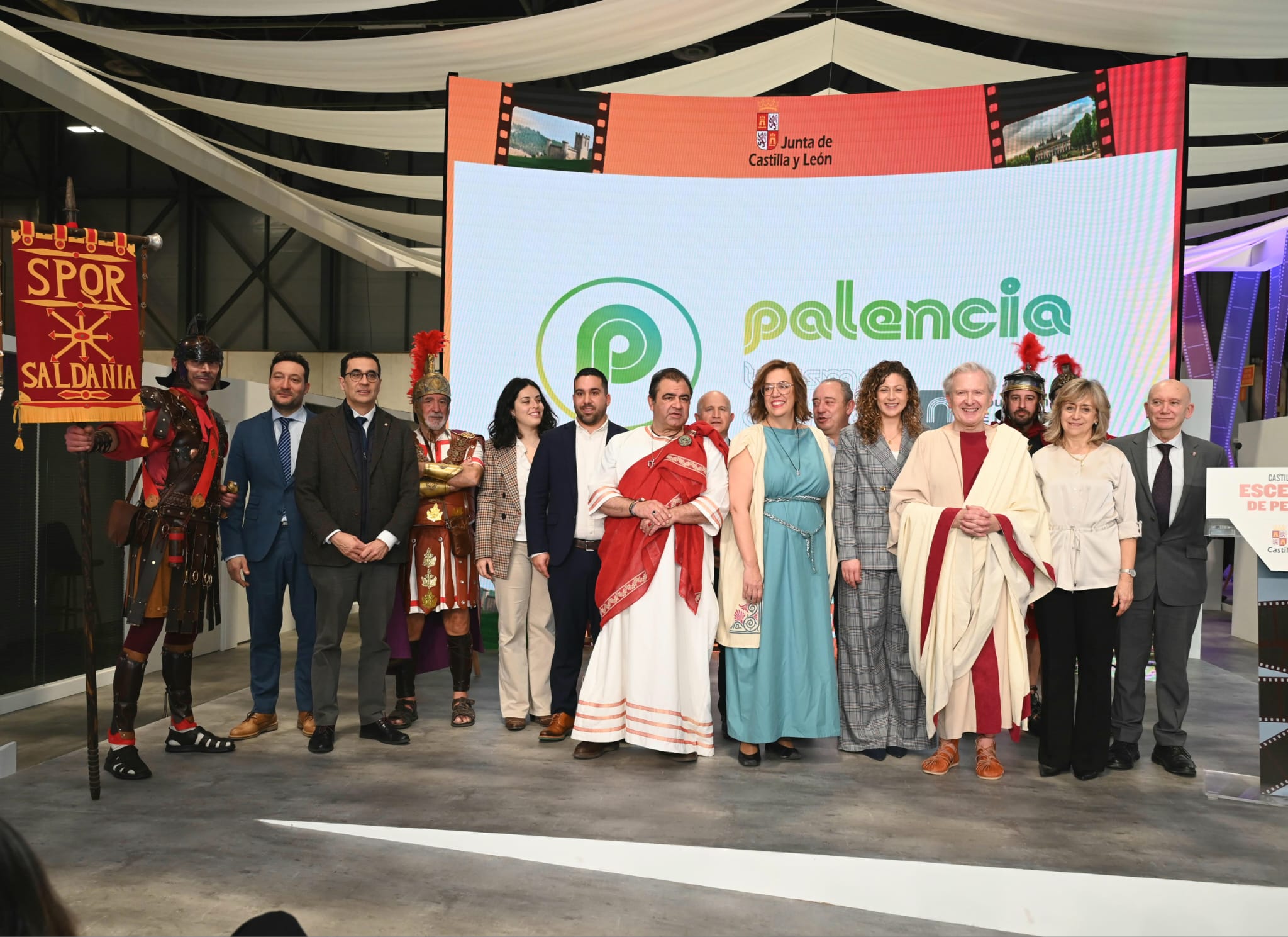 La presidenta de la Diputación, Ángeles Armisén, con la colaboración especial de comunicador e historiador Emilio del Río y la presencia del alcalde de Saldaña, Adolfo Palacios acompañado de varios centuriones romanos, han sido protagonistas esta mañana en el acto de la Diputación palentina de la Feria Internacional de Turismo, FITUR, que se celebra en Madrid hasta el 26 de enero, para dar visibilidad de la oferta turística de la provincia esta año, y que tiene como base las villas romanas palentinas, como ejemplos de nuestro patrimonio provincial.
