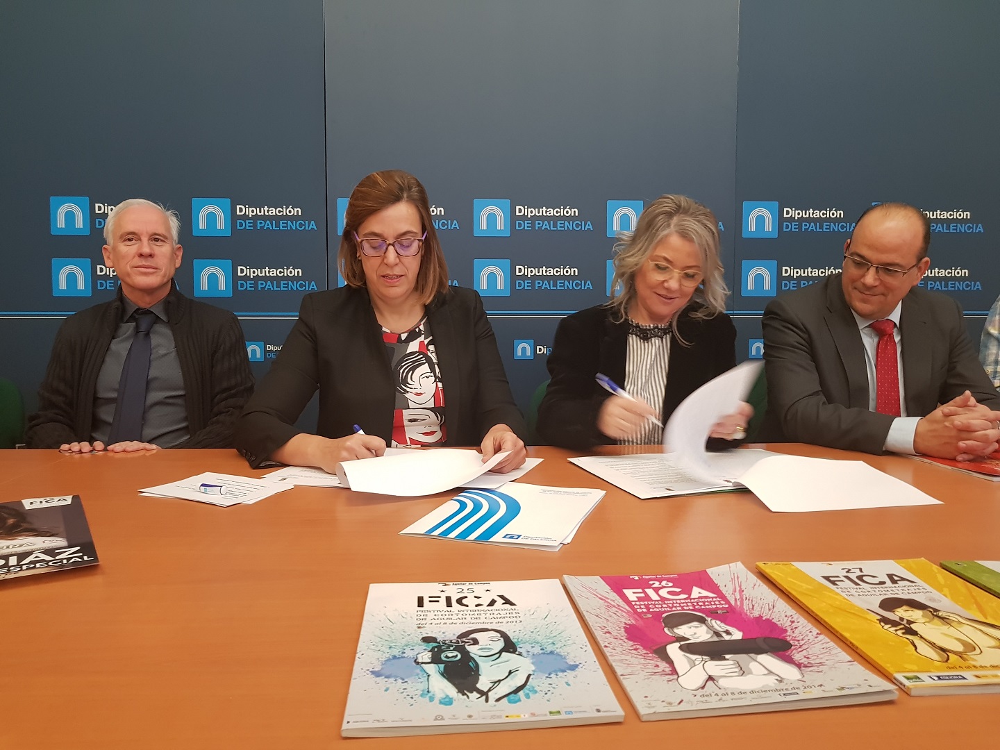 La presidenta de la Diputación, Ángeles Armisén, y la alcaldesa de Aguilar de Campoo, María José Ortega, han renovado esta mañana la colaboración entre ambas instituciones para la organización un año más del exitoso Festival de Cortometrajes del Cine Español (FICA) que llega a su vigésimo novena edición.