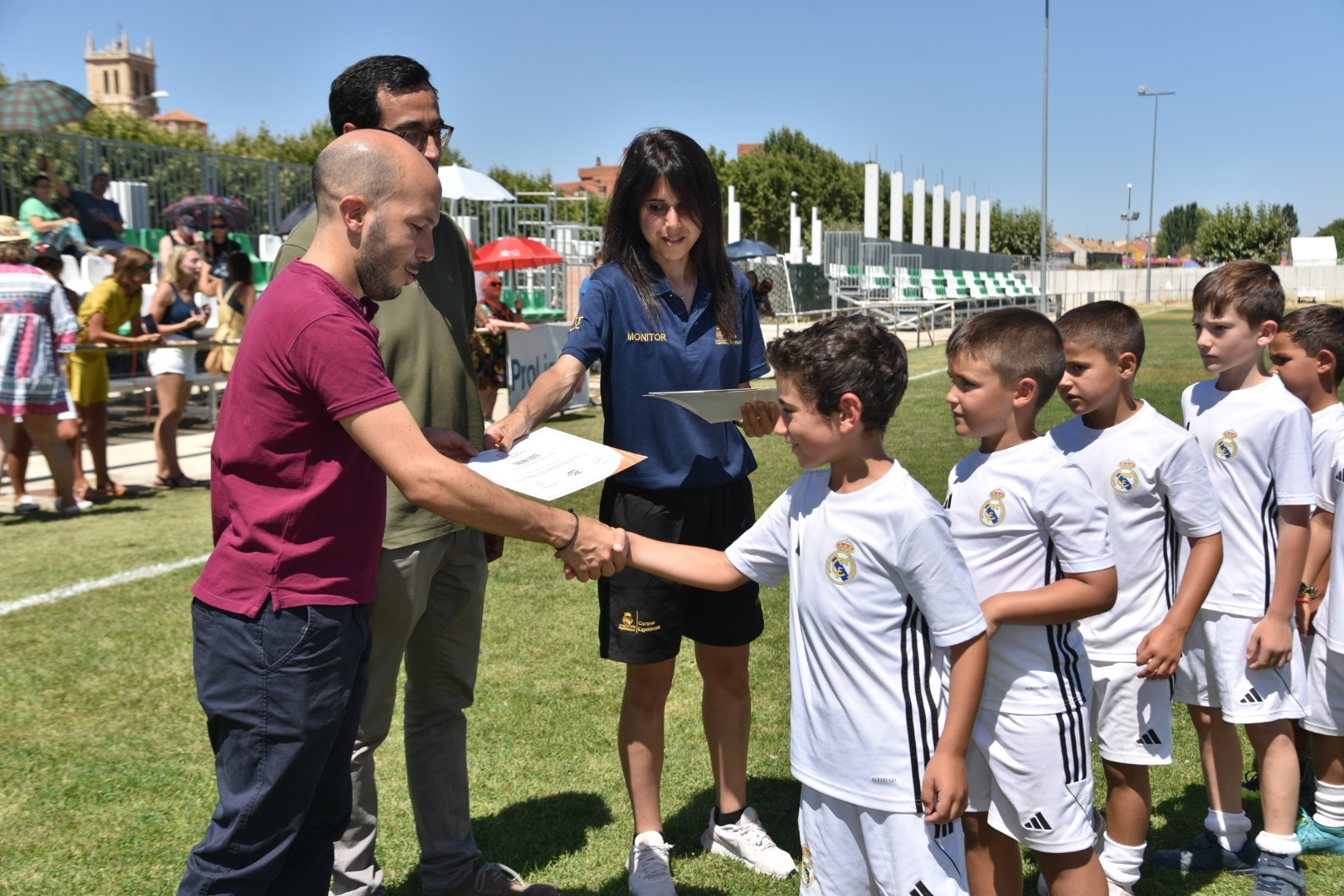 Los chavales han recibido el diploma por su participación en el campus de la mano de la presidenta de la Diputación de Palencia, Ángeles Armisén, del diputado del Área de Deportes, Francisco Pérez, el diputado delegado de Deportes, Eduardo Tejido, del diputado de zona, Juan Antonio Obispo y del alcalde de Villamuriel, Roberto Martín. También Félix González, responsable de Relaciones Institucionales de la Fundación Real Madrid.