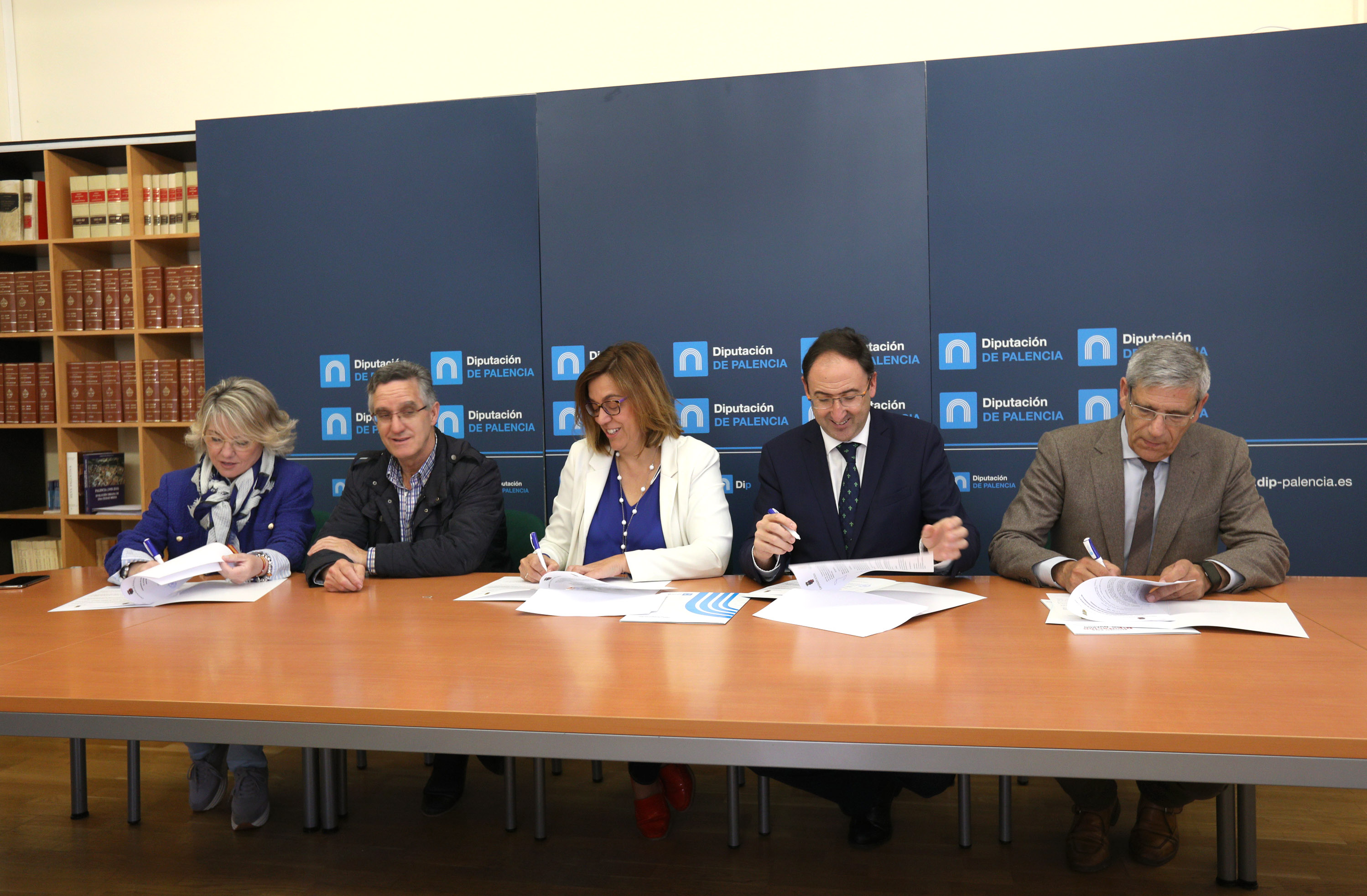 - La presidenta de la Diputación, Ángeles Armisén, acompañada del diputado de deportes, Gonzalo Pérez y los alcaldes de las localidades de Palencia, Alfonso Polanco, Aguilar de Campoo, Mª José Ortega y Guardo, Juan Jesús Blanco, firmaban los convenios correspondientes por importe de 13.500 en el caso de la capital y 6.000 euros para cada uno de los municipios norteños, con el fin de avanzar en la mejora del servicio y sobre todo en el acceso a las instalaciones de baño climatizadas que existen en la provincia en igualdad de condiciones para todos los habitantes de la Provincia.