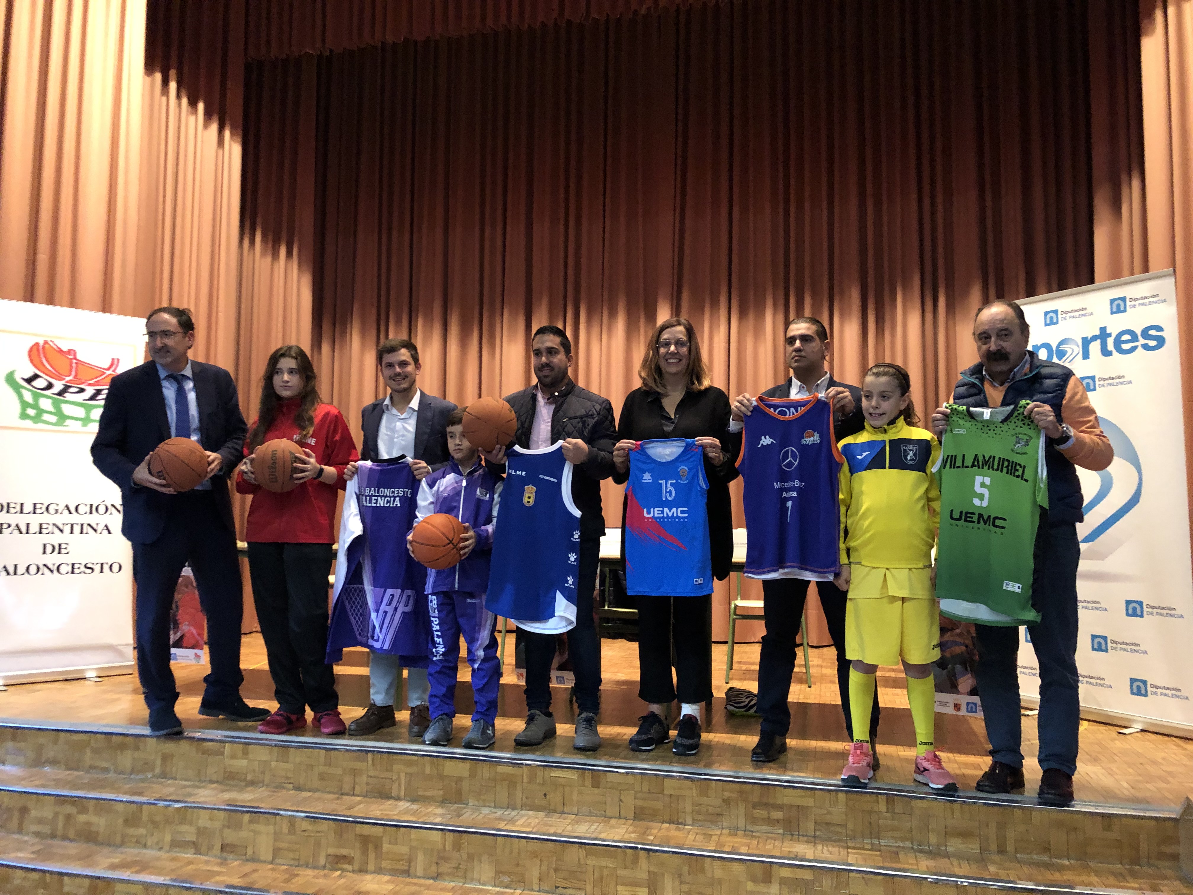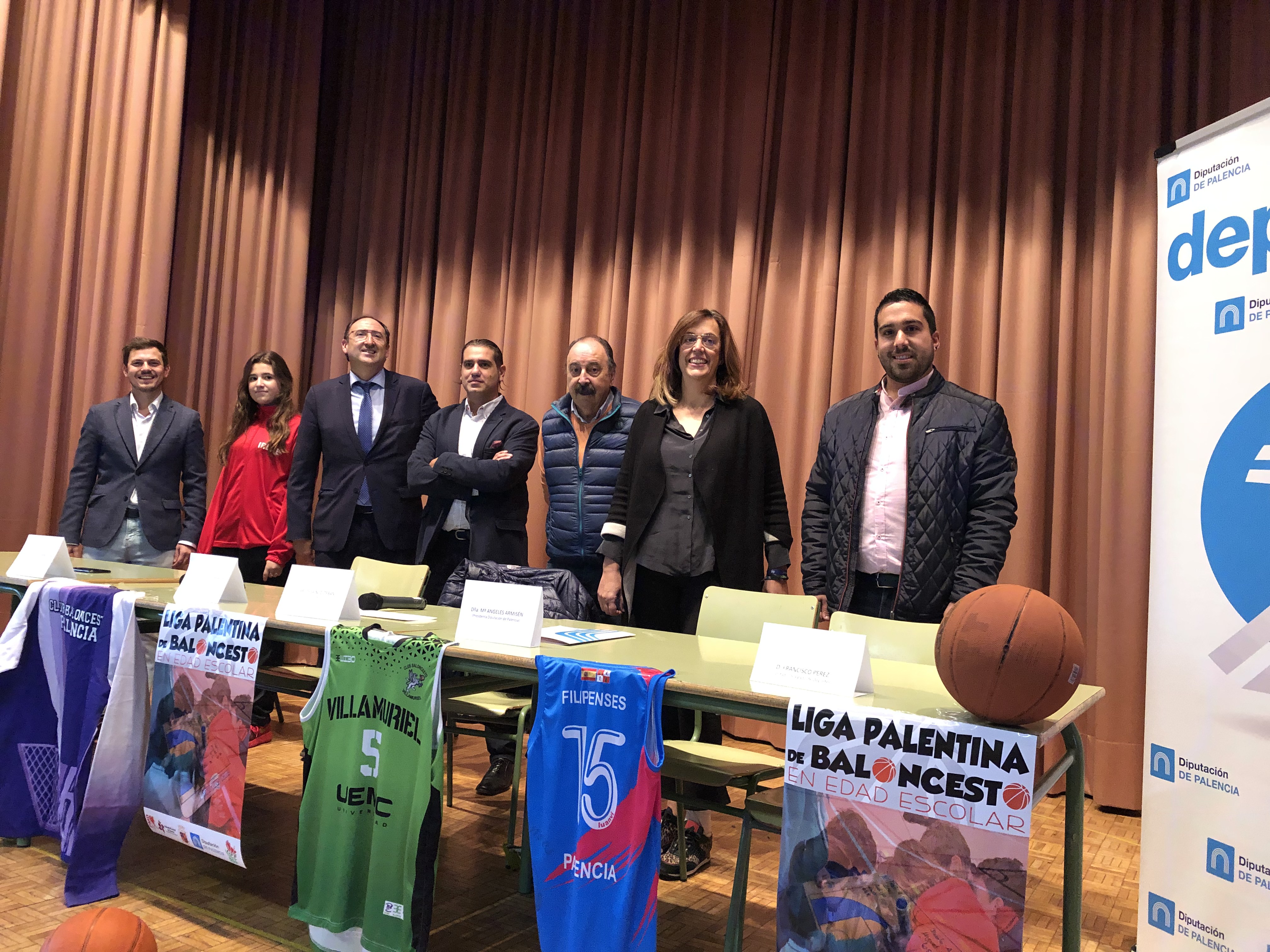 La Presidenta de la Diputación, Angeles Armisén, el teniente de alcalde del Ayuntamiento de Palencia, Alfonso Polanco, el presidente de la Federación de Castilla y León de Baloncesto, Carlos Sainz y el Delegado Provincial de Baloncesto, Javier de la Torre; acompañados por el Diputado Provincial y el Concejal de Deportes, Francisco Pérez y Víctor Torres, respectivamente han presentado hoy la Liga Palentina de Baloncesto en Edad Escolar.