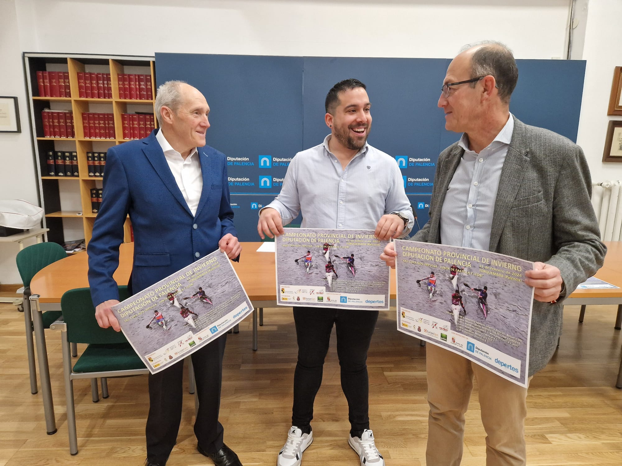 El Diputado del Área de Desarrollo Socioeconómico, Turismo y Deportes, Francisco Pérez, acompañado por el alcalde de Torquemada, Jorge Domingo Martínez, y el delegado Provincial de Piragüismo, Fernando Delgado, han presentado este jueves el “Campeonato Provincial de Invierno de Piragüismo Diputación de Palencia”, que se disputará el próximo domingo 11 de febrero en la localidad de Torquemada.