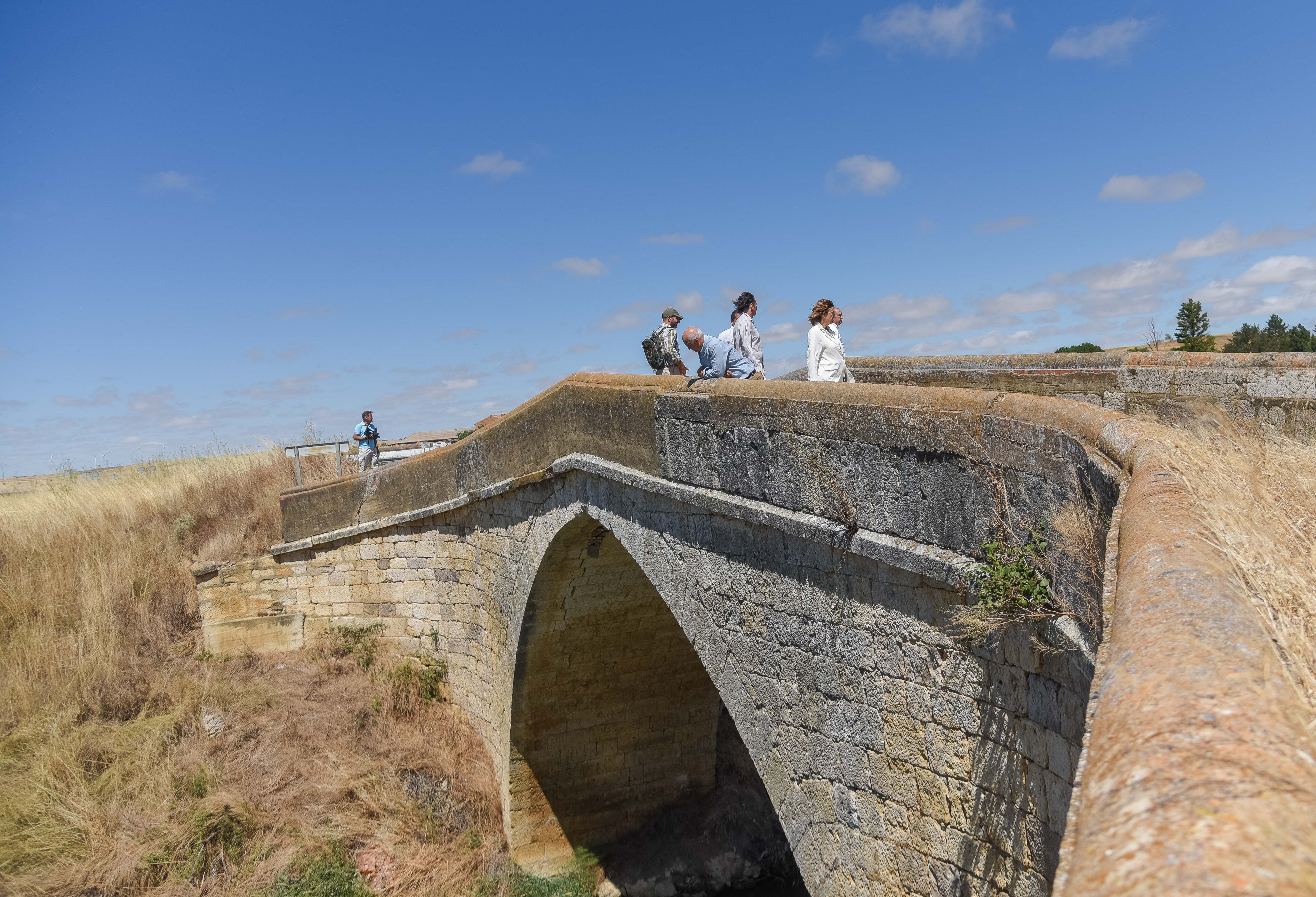 La presidenta de la Diputación de Palencia y presidenta del Consorcio del Canal de Castilla, Ángeles Armisén, acompañada por el diputado de Acción Territorial, Urbano Alonso, y los diputados provinciales de zona, Francisco Pérez y Jesús Tapia, ha visitado las obras finalizadas de la construcción de una pasarela de la Venta de Valdemudo y la CL615, tramo común con el Camino Lebaniego Castellano y la ruta europea Eurovelo 1 enmarcadas dentro del Plan de Sostenibilidad Turística del Canal de Castilla que dotado con 2 millones de euros ha sido concedido al Consorcio del Canal y que está siendo ejecutado por la Diputación de Palencia.
