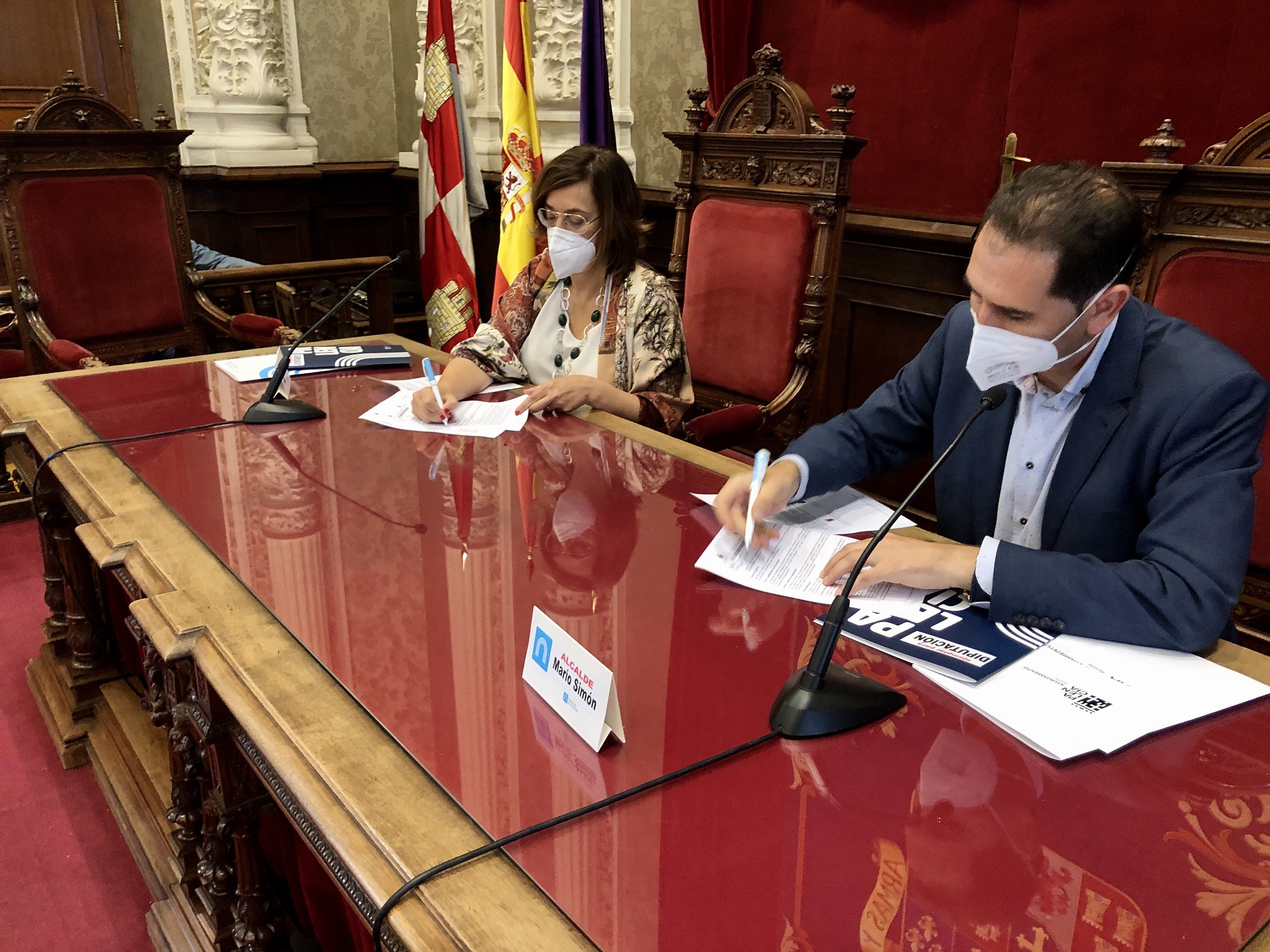 La Diputación de Palencia y el Ayuntamiento capitalino han suscrito esta mañana de manos de sus principales responsables, Ángeles Armisén y Mario Simón; un convenio de colaboración para la ejecución de actuaciones de recuperación fluvial de las riberas del río Carrión en su tramo urbano, concretamente el espacio entre Puentecillas, Puente de Hierro y Santiago Amón, en su cauce principal como cuérnago.