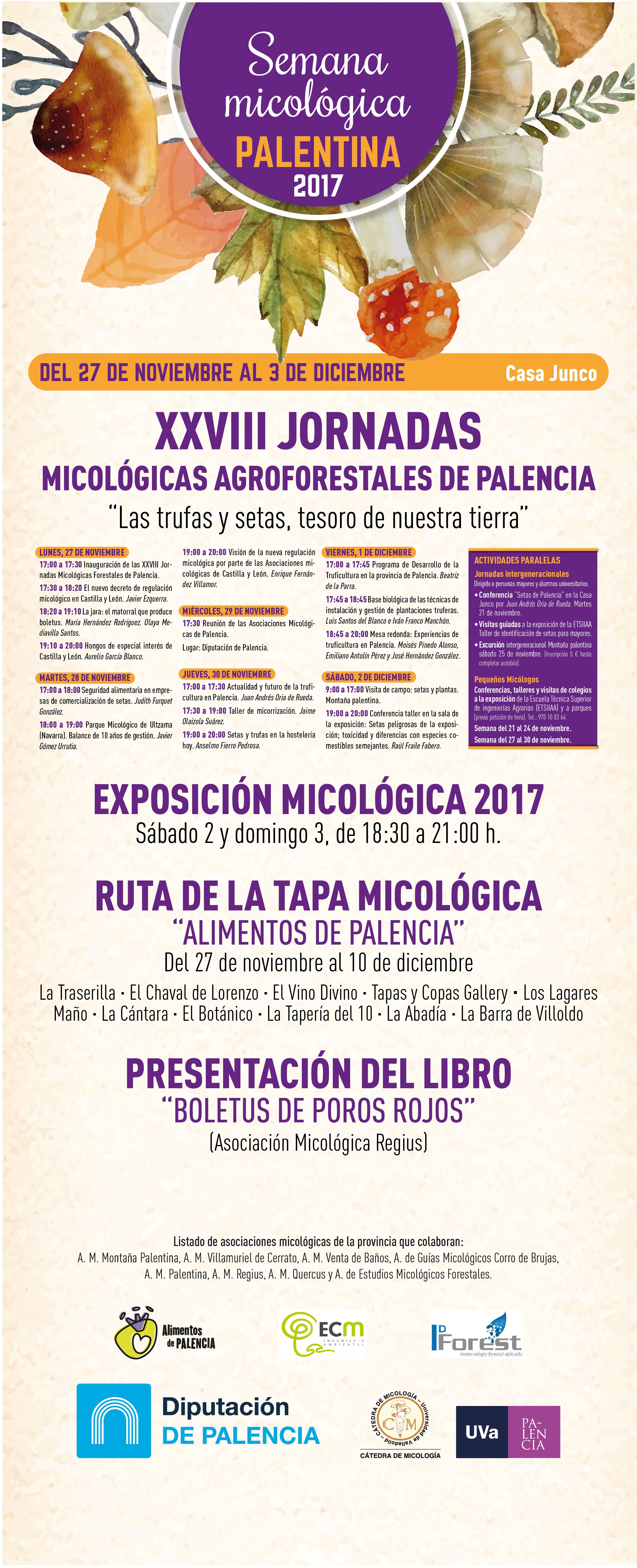 - Ambas actividades están enmarcadas en la programación de la I Semana Micológica Palentina, y las XXVIII Jornadas Micológicas Agroforestales, que desarrollan la Diputación y la Cátedra de Micología de la UVA, en colaboración con las empresas palentinas del sector: ECM e ID Forest.