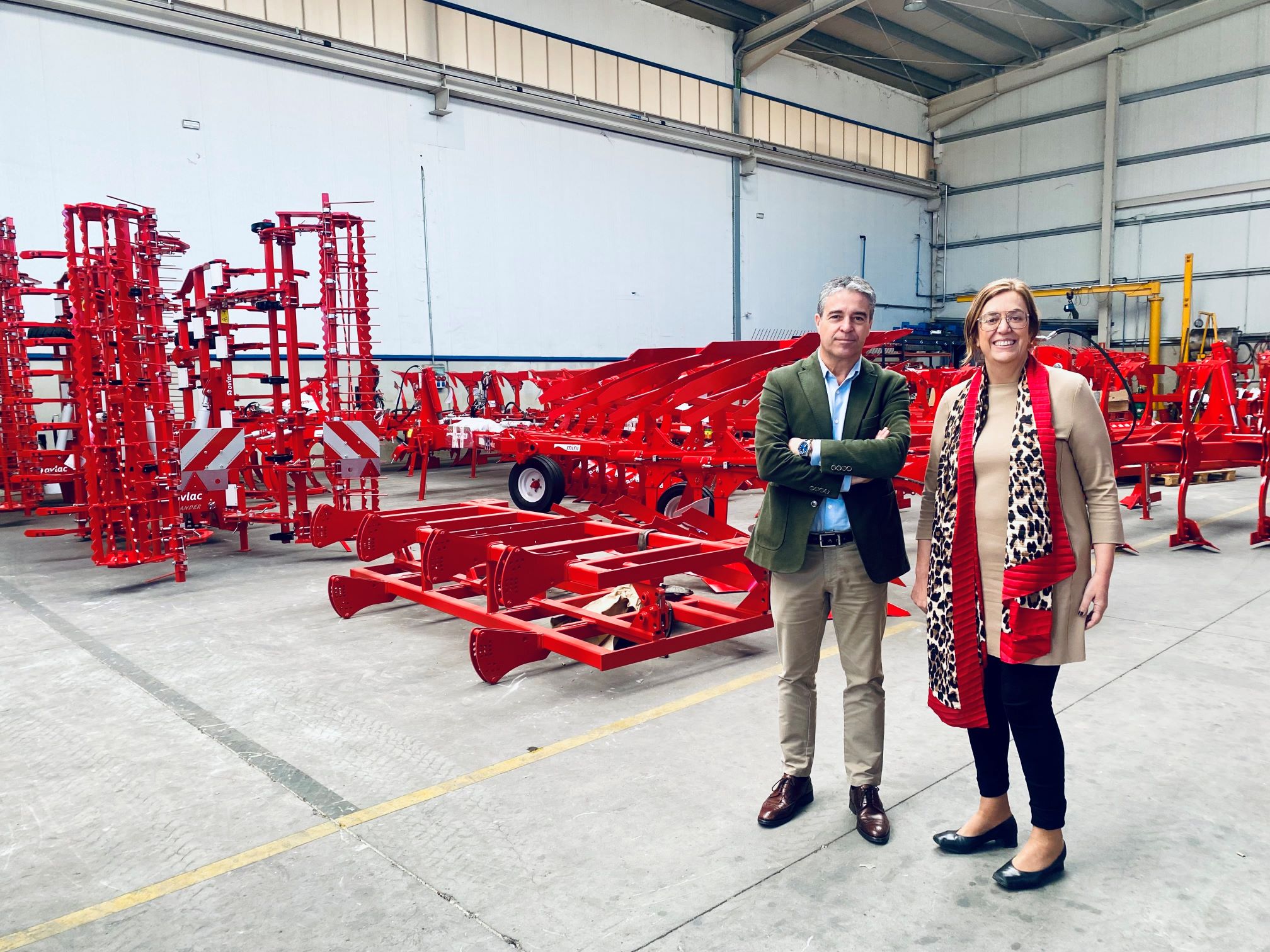 La presidenta de la Diputación de Palencia, Ángeles Armisén, se ha desplazado esta mañana hasta la sede de la empresa palentina Ovlac, que fabrica maquinaria agrícola en Venta de Baños, y que regentan los hermanos Jorge y César Calvo, nietos del fundador y tercera generación de esta empresa familiar que nació en 1936.