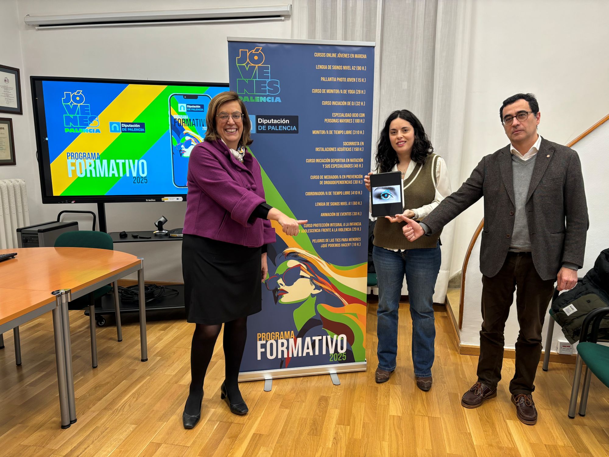 La presidenta de la Diputación de Palencia, Ángeles Armisén, junto al diputado de Servicios Sociales, Juventud, Igualdad y Familias, Juan Antonio Obispo y a la diputada delegada del Servicio de Juventud, Mujer, Familia, Infancia e Igualdad, Patricia Pérez, han presentado esta mañana el nuevo Programa Formativo de Juventud 2025 que llevará multitud de actividades y talleres a lo largo y ancho de nuestra provincia durante este año.