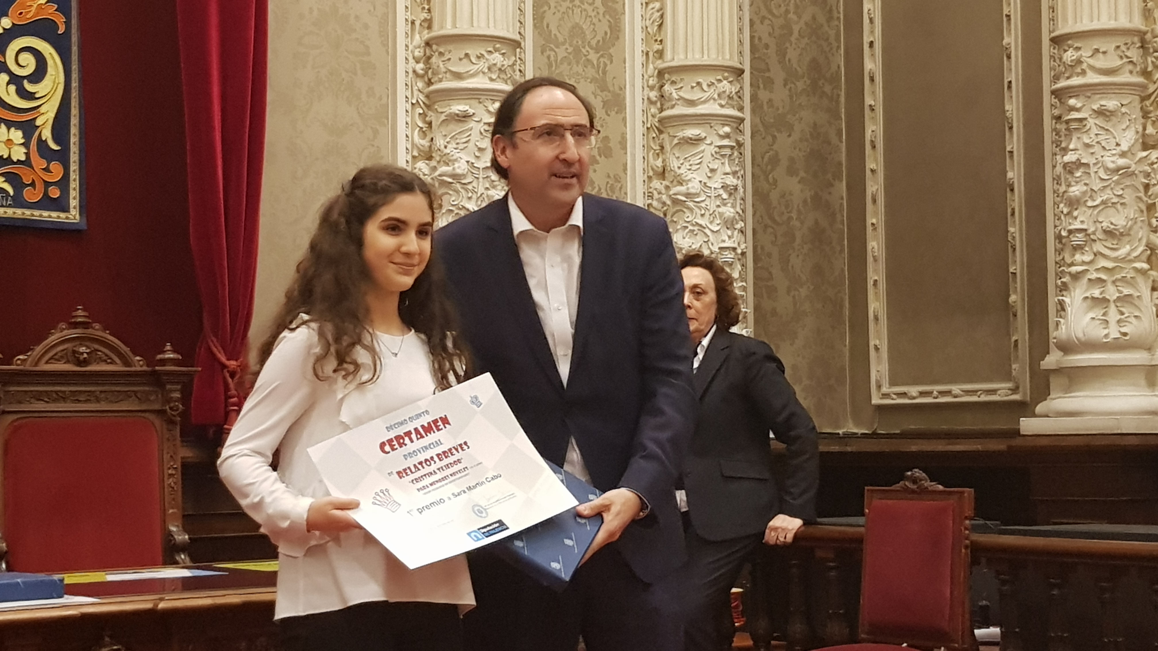 El diputado del Área de Servicios Sociales, Alfonso Polanco, acompañado del diputado delegado de Juventud, Juan Antonio Obispo, y los diputados provinciales, Juan Jesús Nevares y Milagros Bodero han estado presentes en el Palacio provincial, en el acto de entrega de los XV premios de relato breve Cristina Tejedor, junto al coordinador de los Servicios Sociales, César Burón y los miembros del jurado, Marcelino García Velasco, poeta y director de la institución cultural Tello Téllez de Meneses y Miguel Ángel Calleja, profesor.