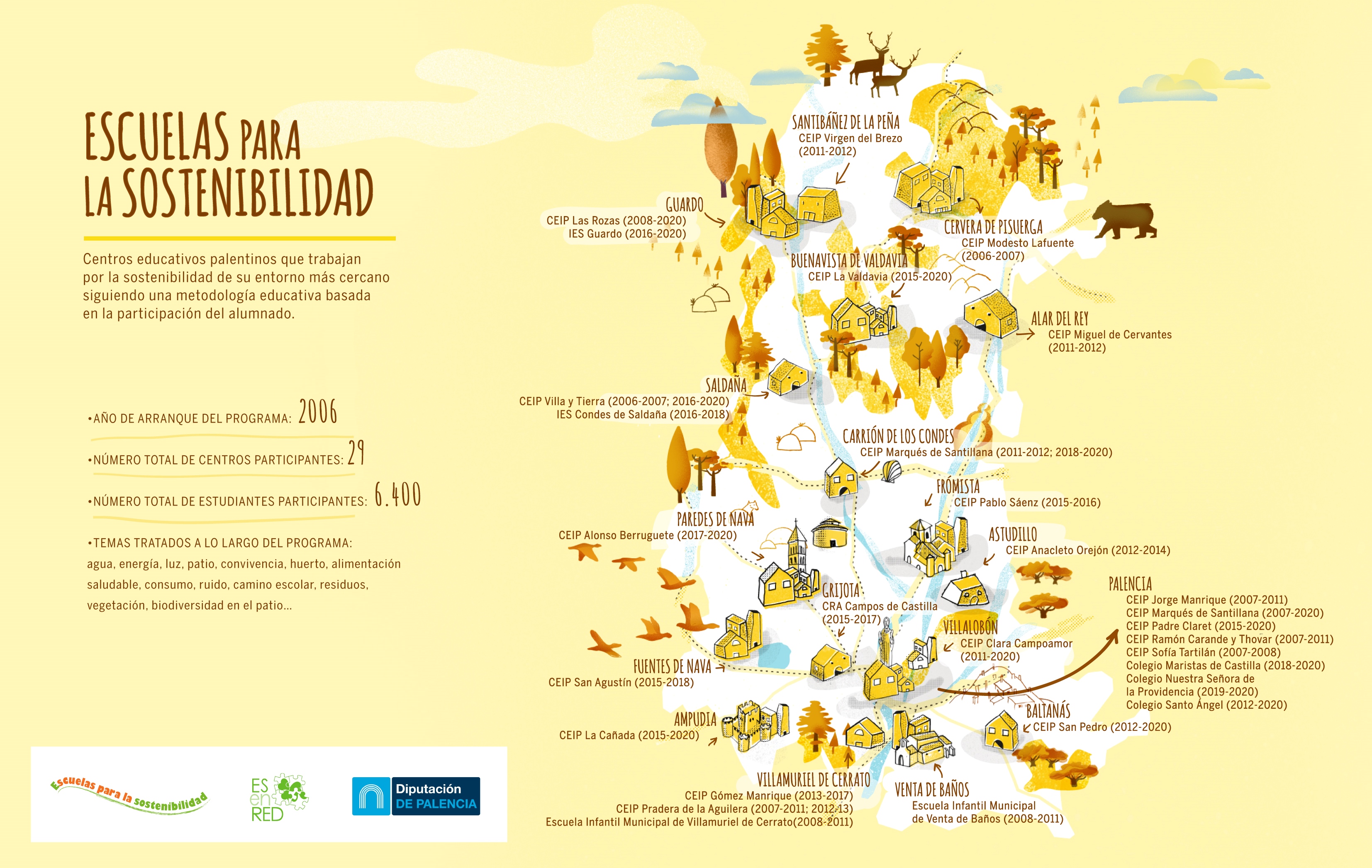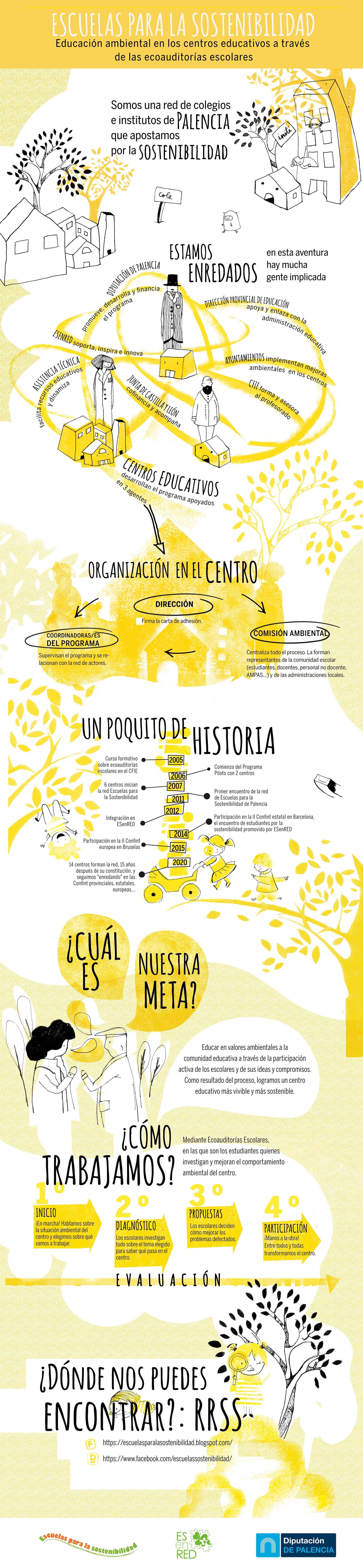 Escuelas para la Sostenibilidad está promovido por el Servicio de Medio Ambiente de la Diputación de Palencia, con la colaboración de la Dirección Provincial de Educación de Palencia. Se inicia a partir de una experiencia piloto desarrollada en el curso 2006-2007.