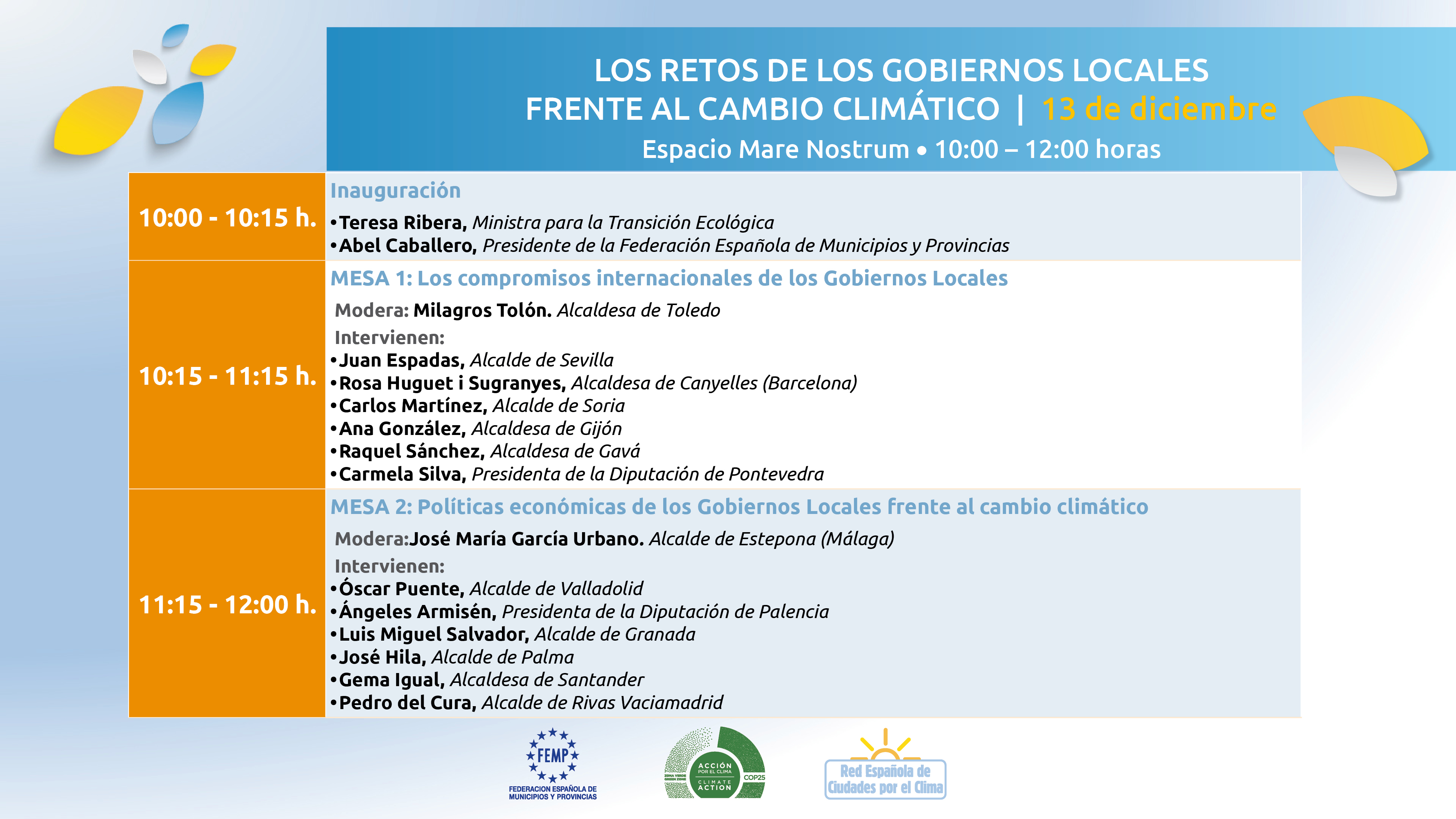 • Una mesa redonda en la que se analizarán las políticas económicas de los Gobiernos Locales frente al cambio climático y en la que Armisén compartirá debate con alcaldes de otros municipios de España como Santander, Granada o Palma.