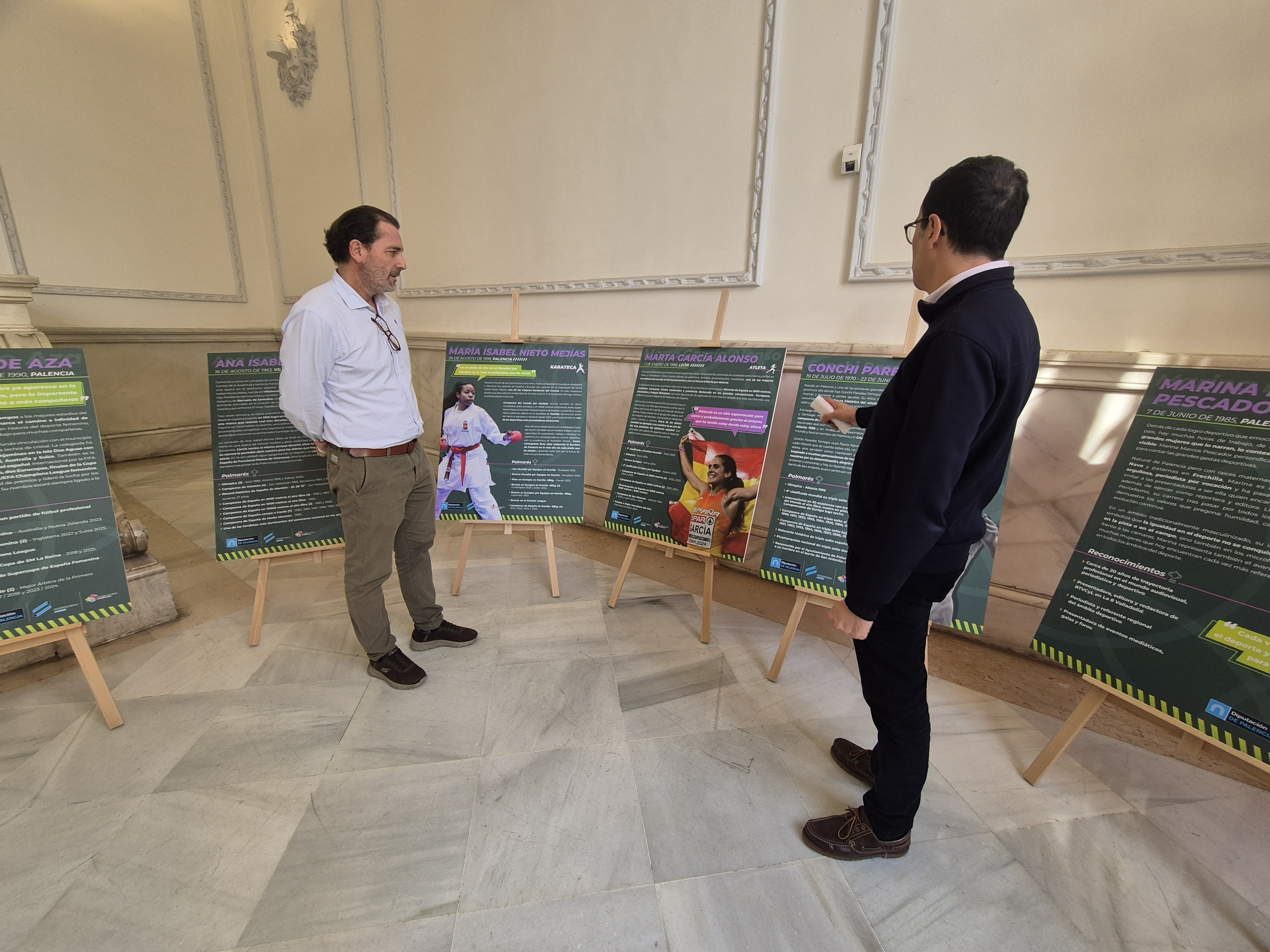La muestra rinde homenaje a diez mujeres referentes en sus respectivos ámbitos, visibilizando su trayectoria y su contribución al avance del deporte femenino: Marta Huerta de Aza, árbitra profesional, María Isabel Nieto Mejías, karateca, Marta García Alonso, atleta, Conchi Paredes Tamayo, Triple Salto. Ana Isabel Alonso Nieto, atleta, Marina Marcos Pescador, periodista deportiva, Lucía Estalayo Martín, deportista multidisciplinar, Victoria Calderón Betegón, jugadora de Baloncesto, Ana Collantes de la Pisa, presidenta del Club Balonmano Palencia Femenino y Elena Caballero Merino, entrenadora de atletismo.
