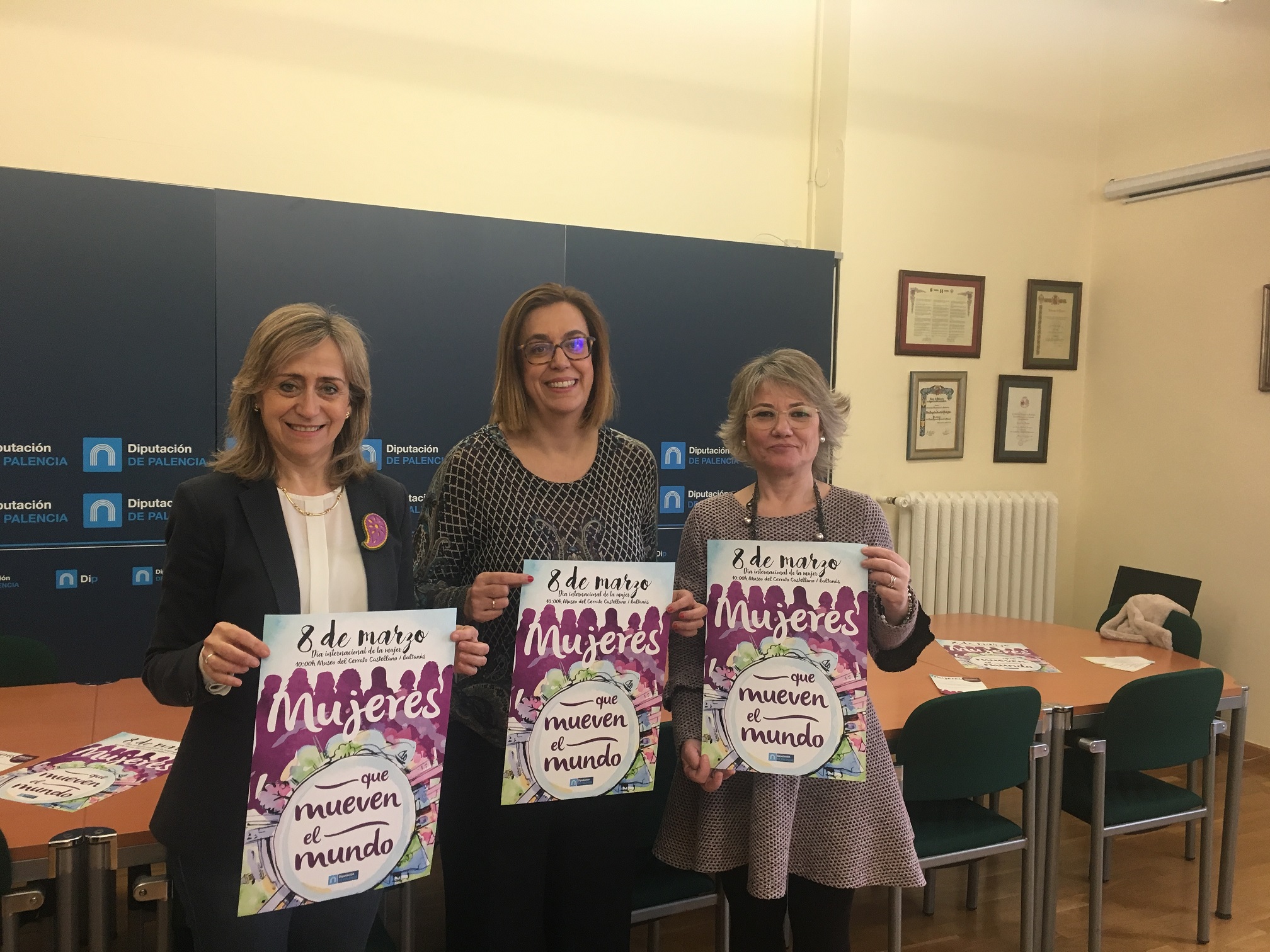 La presidenta de la Diputación, Ángeles Armisén y la presidenta del Consejo Provincial de la Mujer, Mª José Ortega, acompañadas por la diputada de Servicios Sociales, María José de la Fuente, han presentado esta mañana los actos programados para conmemorar el próximo día 8 de marzo el Día Internacional de la Mujer.