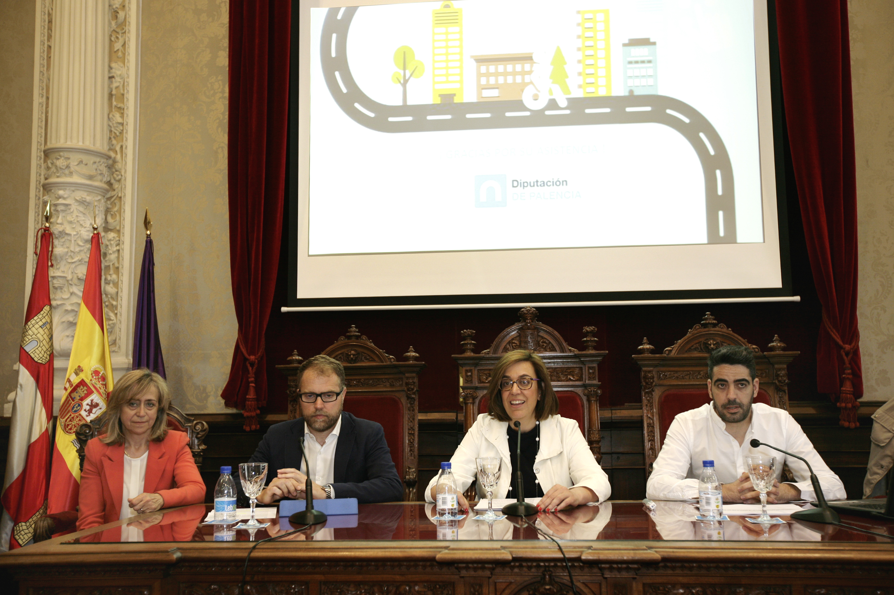 La presidenta de la Diputación, Ángeles Armisén, acompañada de la diputada de Servicios Sociales, María José de la Fuente, y los técnicos, Eladio Ruíz de Navamuel y Roberto Gutiérrez, presentaban esta mañana la Guíade Criterios Técnicos para el Diseño y Ejecución de Itinerarios Accesibles en la provincia de Palencia a los representantes de las 35 Asociaciones que en favor de la Discapacidad operan en la provincia de Palencia, con el fin de darles a conocer este instrumento que les puede servir de ayuda para avanzar en la puesta en marcha de recorridos accesibles para sus usuarios en los municipios de la provincia.