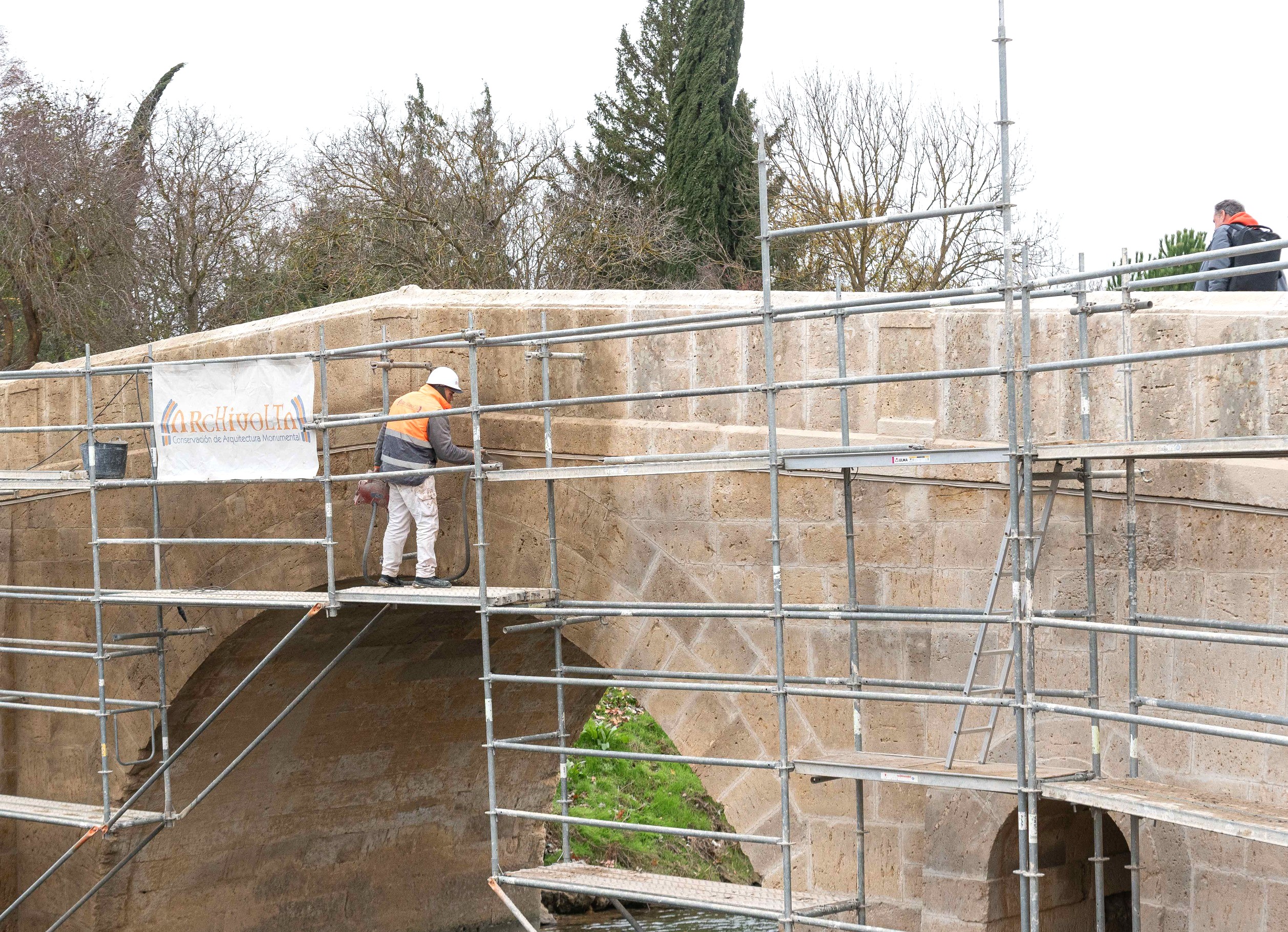 Se consolidarán aquellos elementos de fábrica que por su estado de deterioro se estimen necesarios, la superficie deteriorada en pretiles, aceras y muros de sillería a fin de recuperar la resistencia original sin reducir la permeabilidad del elemento ni alterar su aspecto. Se eliminarán también los añadidos tratando de dejar una imagen diáfana del puente histórico. En definitiva, se trata de adecuar el espacio del puente comprendido entre las dos orillas del cauce.