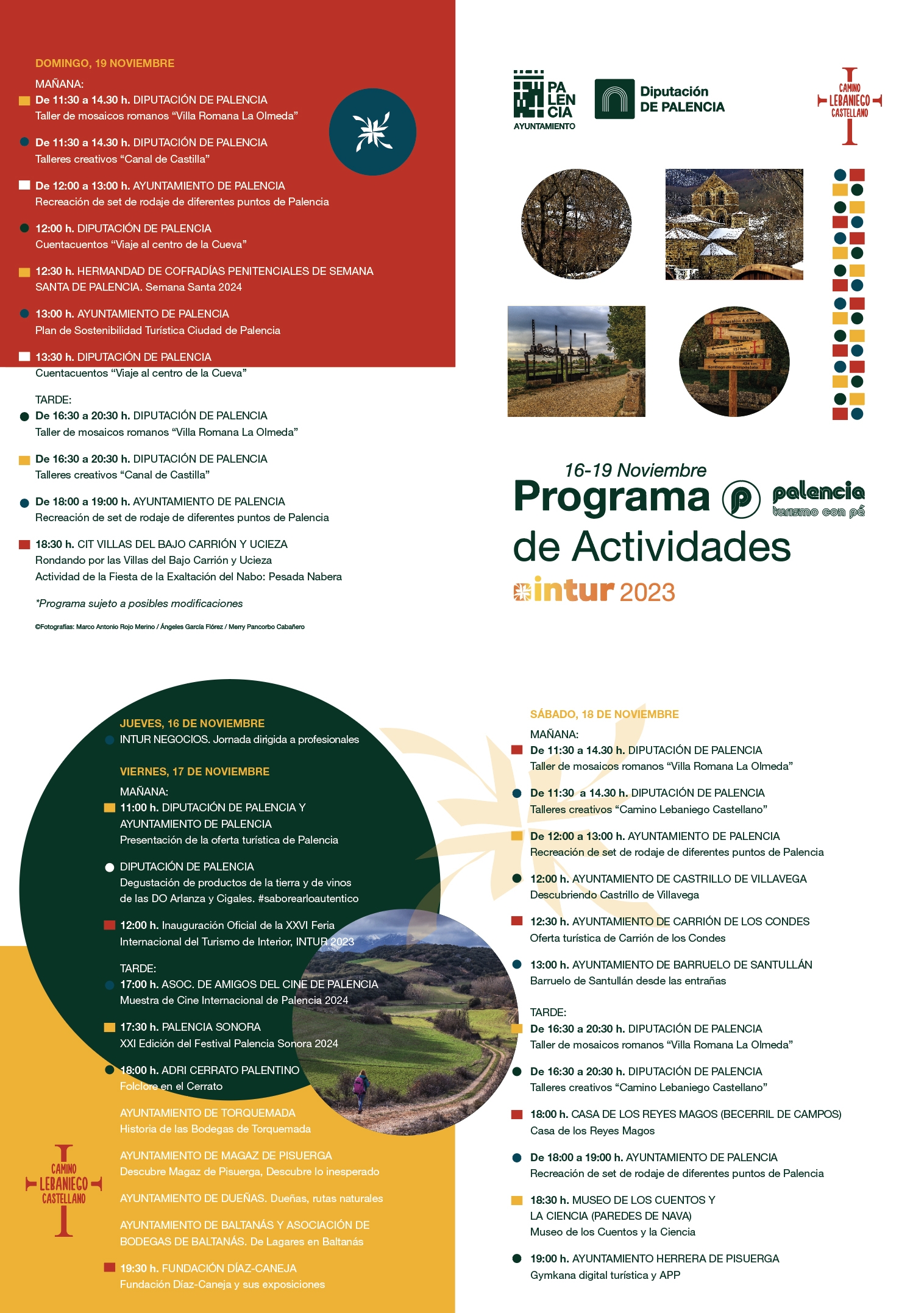 PRESENTACIÓN DE PALENCIA. El viernes 17 de noviembre a las 11.00 horas la Diputación y el Ayuntamiento presentarán la oferta turística de Palencia y se degustarán una selección de productos de la tierra y de vinos de la DO Arlanza y Cigales enmarcados dentro de la campaña #saborearloauténtico. Ya por la tarde, Adri Cerrato Palentino presentará el Folclore en el Cerrato, con el ayuntamiento de Torquemada (Historias de las Bodegas), el ayuntamiento de Magaz de Pisuerga con la campaña ‘Descubre Magaz de Pisuerga, Descubre lo Inesperado), el ayuntamiento de Dueñas, ‘Dueñas, rutas naturales’ y el Ayuntamiento de Baltanás y la Asociación de Bodegas Baltanás con la presentación ‘De Lagares en Baltanás’. La programación del sábado y el domingo se complementa con talleres de mosaicos romanos ‘Villa Romana La Olmeda’, talleres creativos del Camino Lebaniego Castellano’, del ‘Canal de Castilla’ y un cuentacuentos que lleva el título ‘Viaje al centro de la Cueva’.